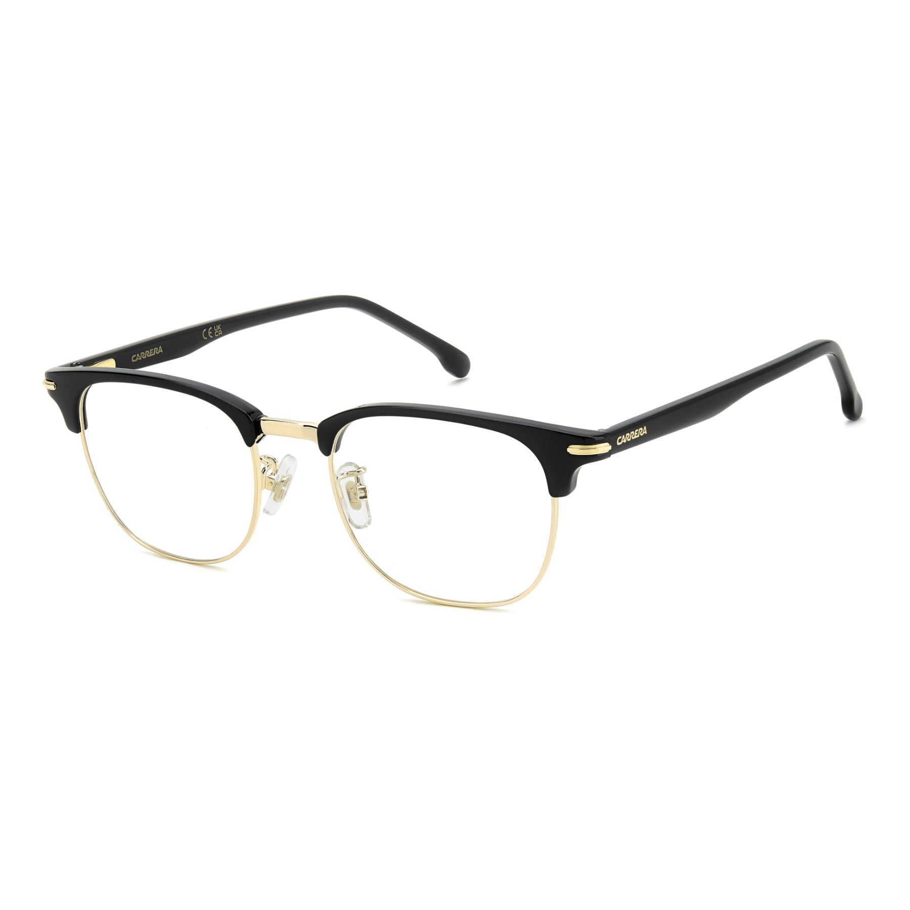 These Carrera optical glasses combine classic style with a bold edge. Their timeless shape stands out in any setting, made from stainless steel and plastic materials. Flex hinges and adjustable nose pads ensure a perfect, comfortable fit.