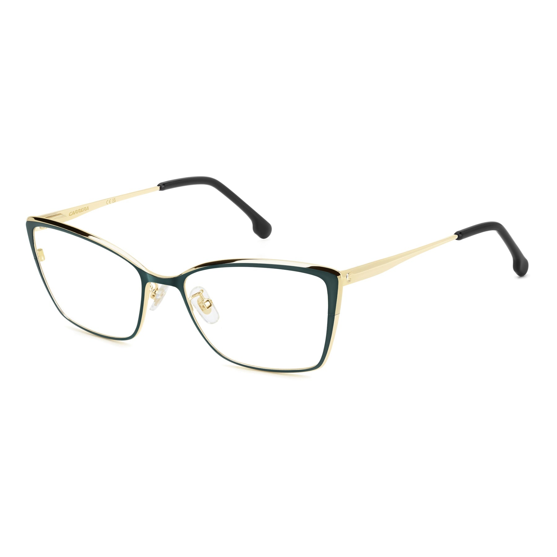 Femininity abounds in these eyeglasses for women. Carrera has crafted the structure in metal in various tones of gold, with classic colours of enamel to coat the cat-eye front. Slender temples accentuate the refined character of this style, trimmed by a laser-engraved ‘C’ logo. As such, the authentic spirit of Carrera embraces refined aesthetics: the result is an accessory which brings special allure to everyday ensembles.