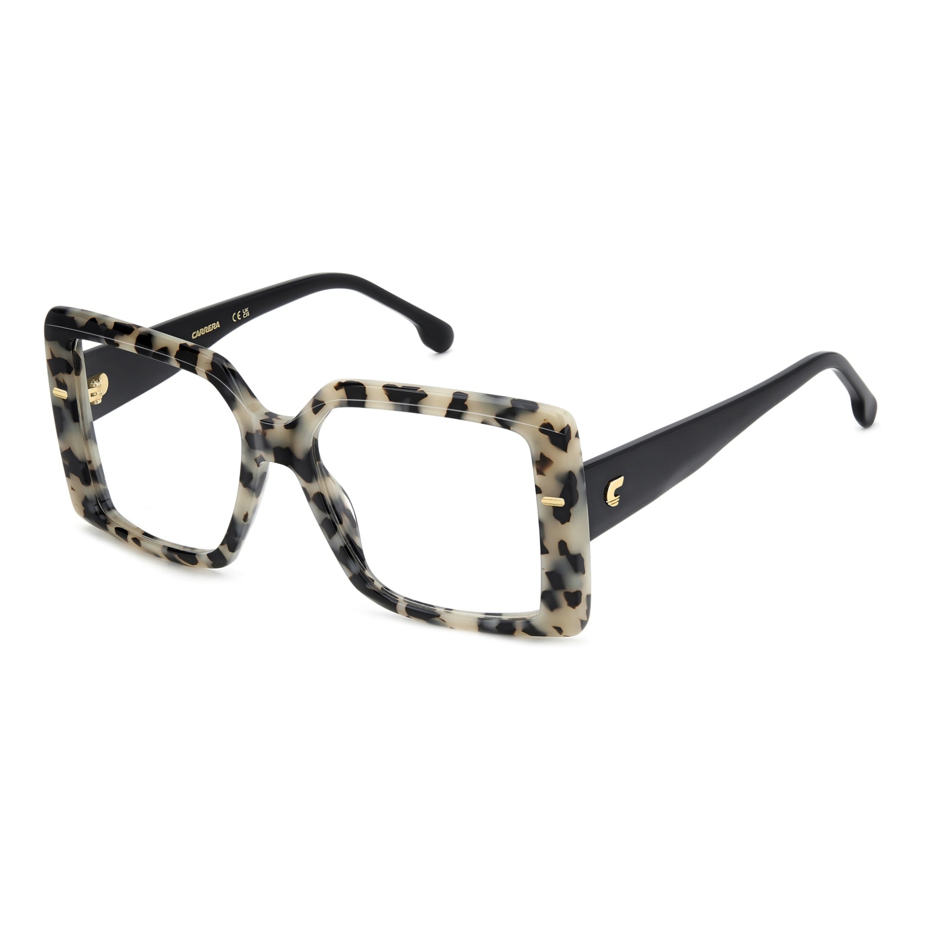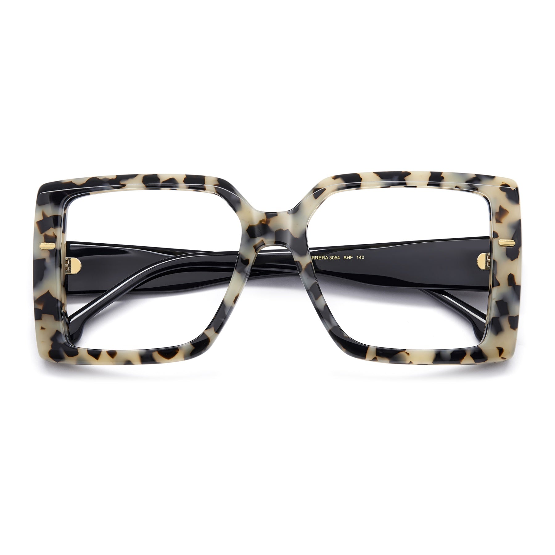 Square, slightly oversize, and simply irresistible: these Carrera women’s eyeglasses are sure to get noticed. Crafted in acetate, they feature a bold silhouette and notable temples positioned at the centre-line of the frames. Metal details recall iconic Carrera accents: flag-inspired rivets and the famous ‘C’ clearly visible on the temples. The colours offered are exceptionally versatile, ranging from multi-layer to horn-effect and transparent with a visible metal core.
