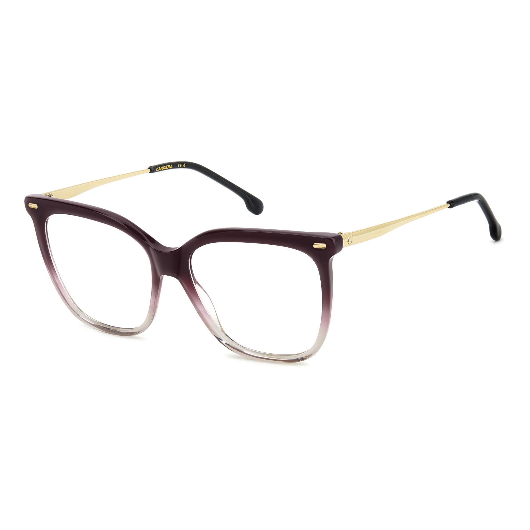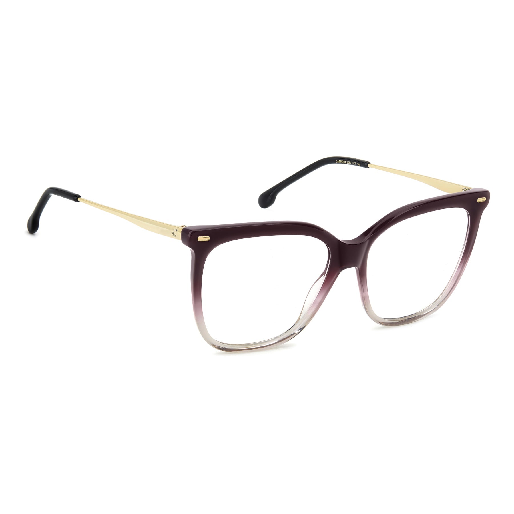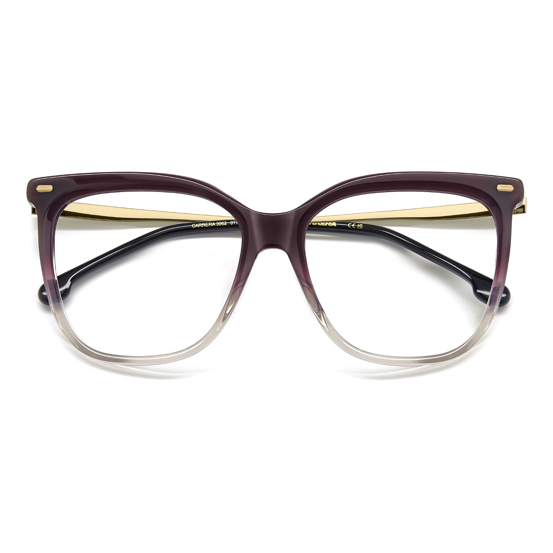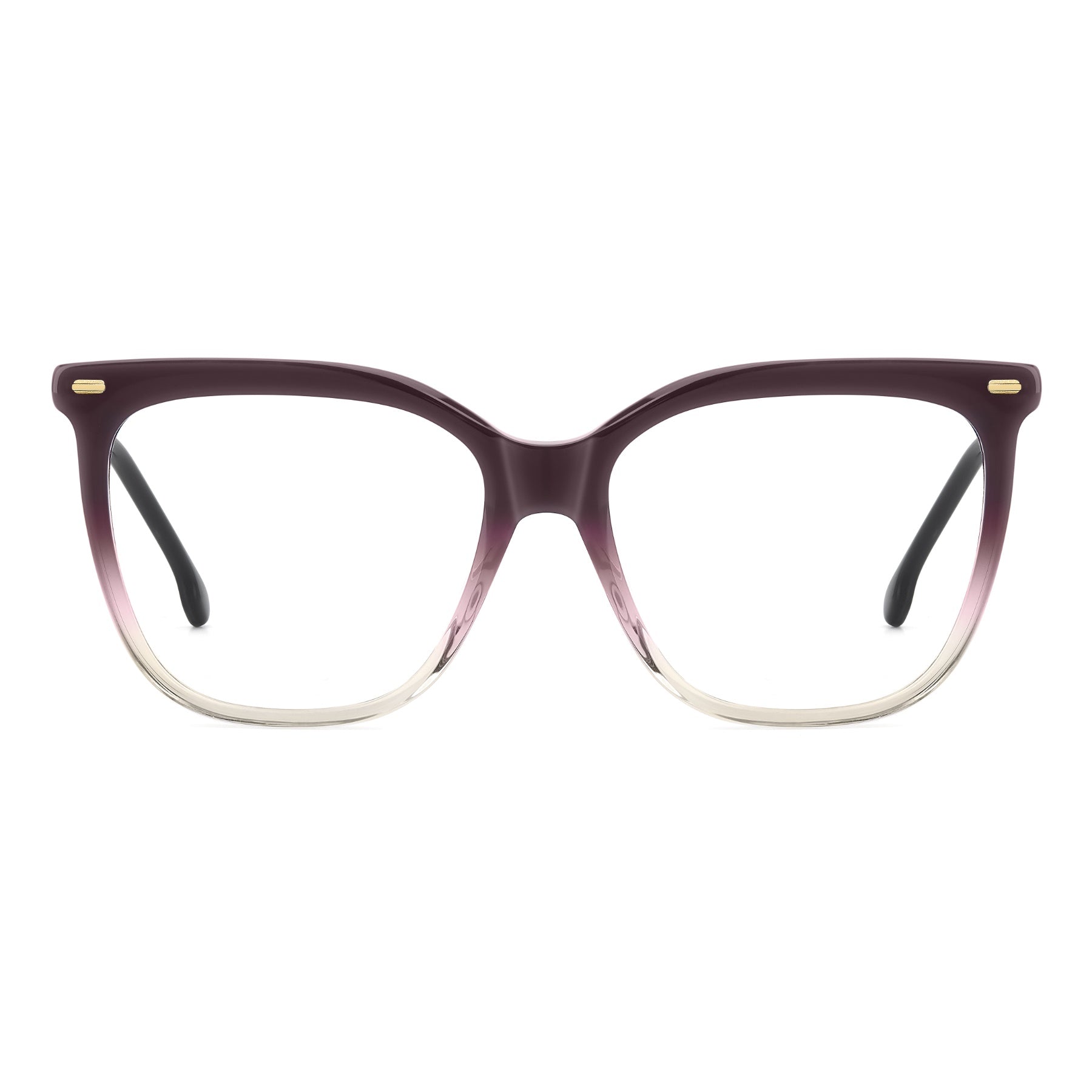 Carrera promises to elevate your style with these women’s eyeglasses. Their singularity arises from the juxtaposed materials: acetate for the front and metal for the temples. The square frames are classic, brightened by chiselled rivets. There are hues for all tastes and styles, but the version with the two-tone injected acetate trim along the top is the fresh detail of the season.
