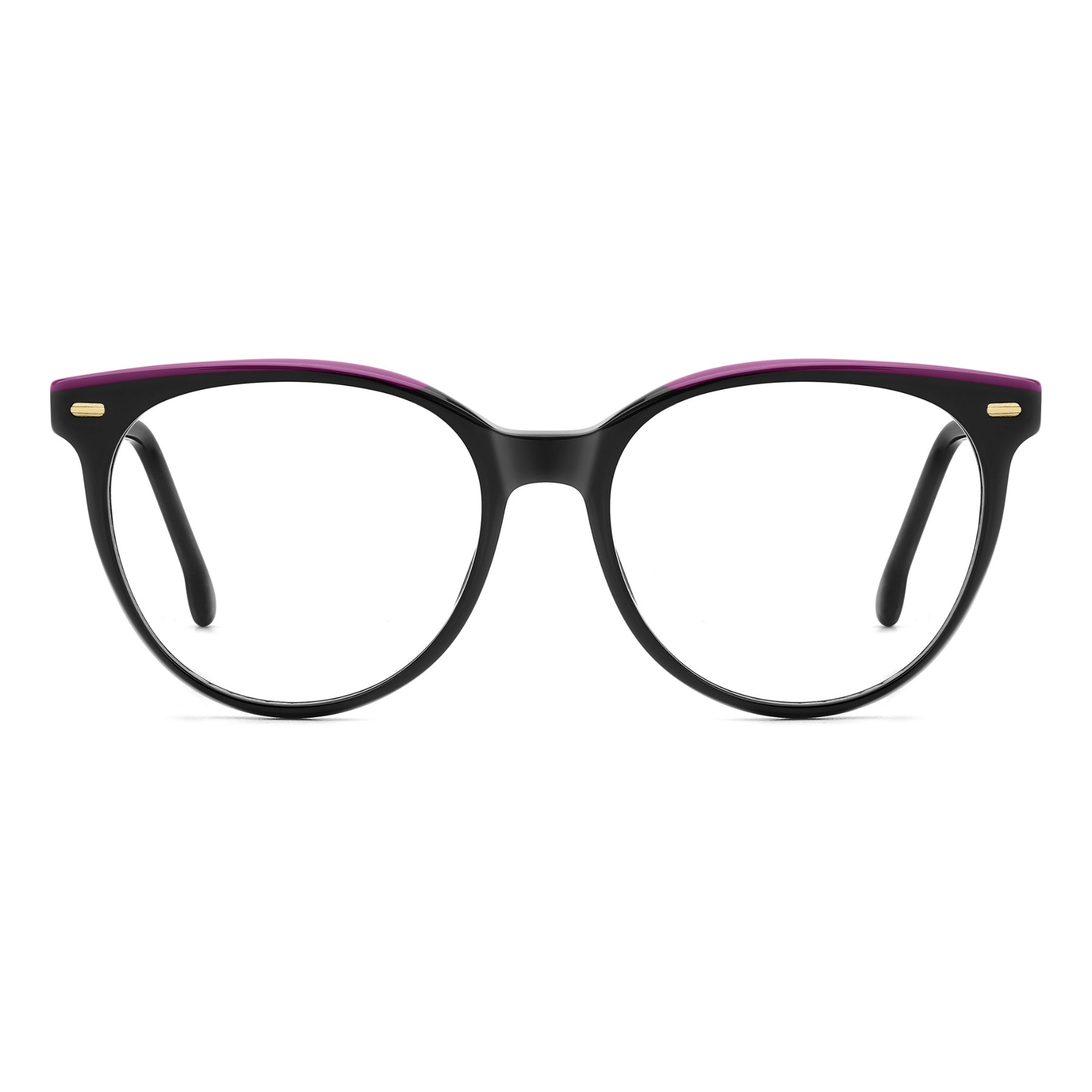 With these Pantos glasses for women, Carrera has created a contemporary classic. The acetate structure is embellished by rivets at the front. On the temples, the embossed 'C' is subtle but recognizable, a signature Carrera detail. The colourways are stunning and include transparent versions and those with a contrast inlay along the top. Flex hinges offer an always-comfortable fit.