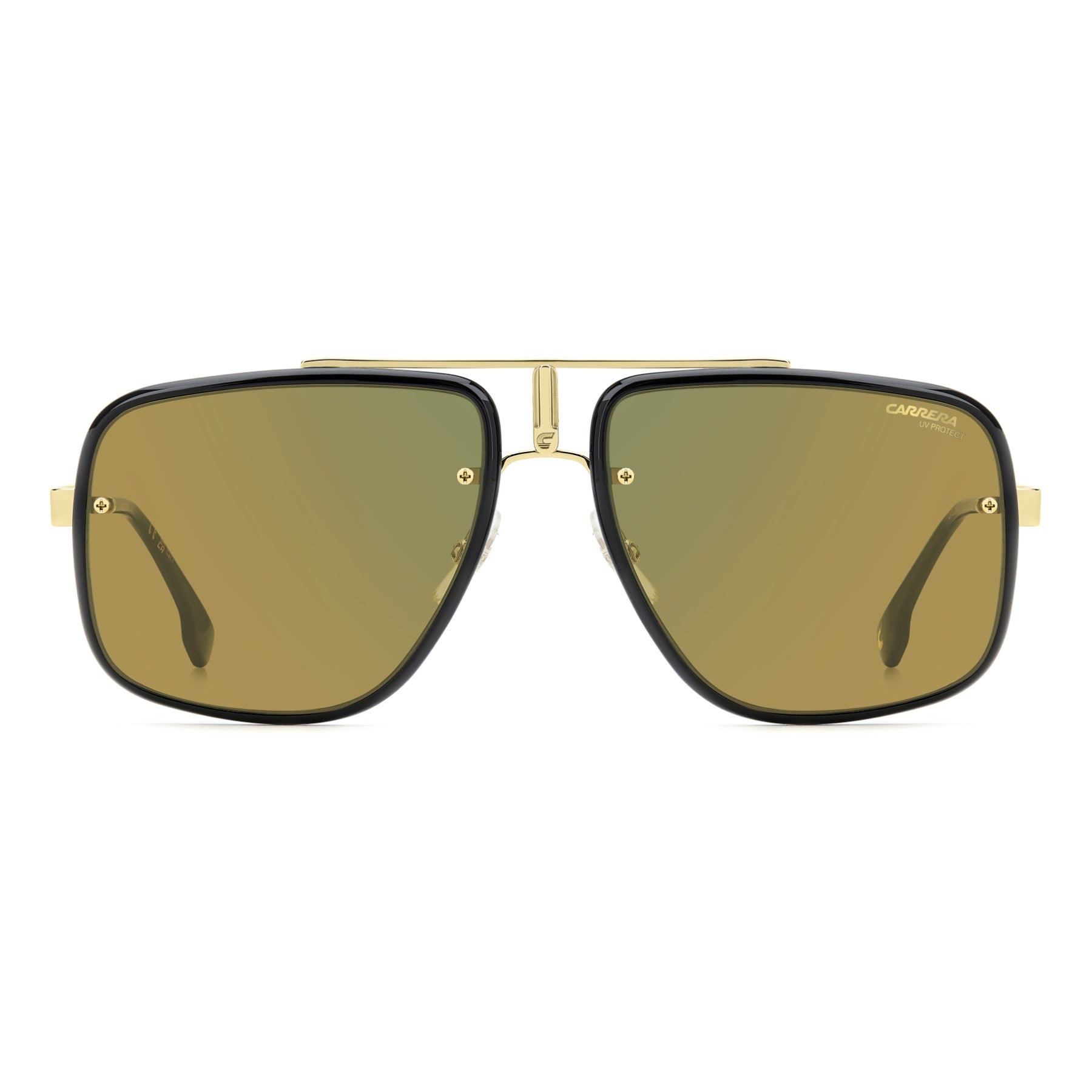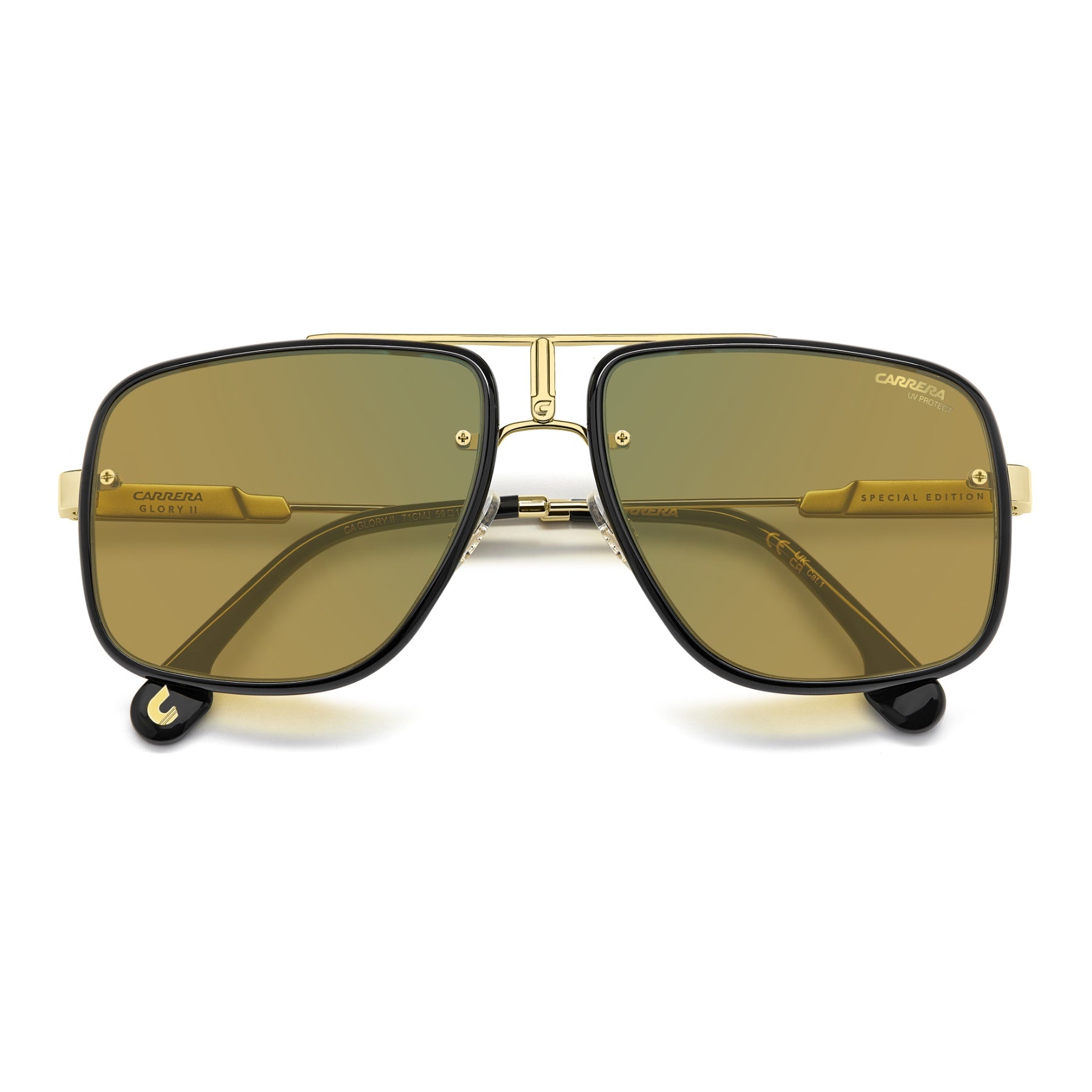 The boldest expression of Carrera’s unique aesthetic – these unisex sunglasses from the Flag Lab collection push the boundaries of contemporary eyewear design. Sculpted from lightweight metal into a large navigator shape, the oversized full-rim front is enhanced by a layered construction for added depth and dimension. The unmistakable logo detailing rounds off this truly modern, statement-making pair. The Flag Lab gets inspiration by the utmost iconic and recognizable details of Carrera, with the Glory II leveraging on the stylistic elements of its sister best seller style Glory, offering a style for a stronger look. Notice the iconic Flag stripe — the brand's trademark motif inspired by Carrera's ski-jumping 'Bullet' helmet — hand-painted with red enamel along the top bar as well as sleek metal temples which evoke the iconic Carrera Champion style, remastered in a luxurious modern way. Unconventional and always one step ahead.
