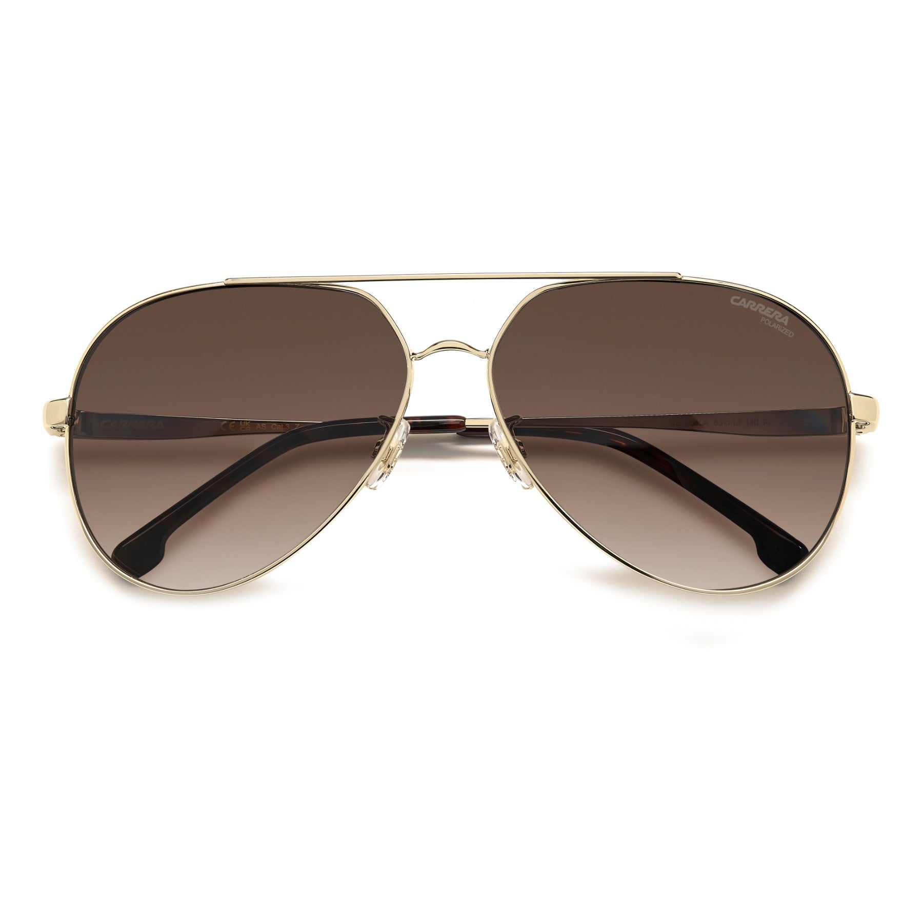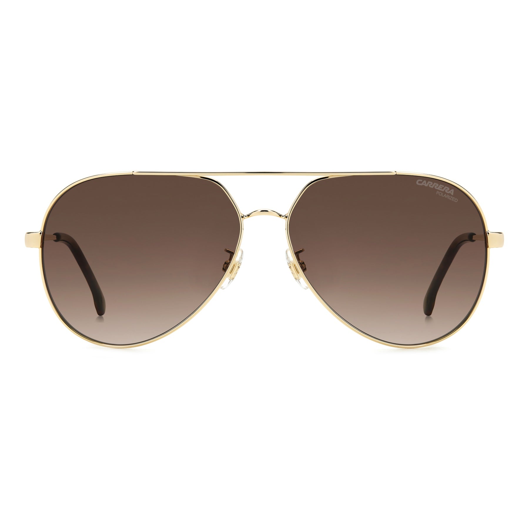 These women’s sunglasses are a modern take on an iconic Carrera silhouette—pilot frames—giving them an on-trend contemporary look. In lightweight stainless steel, they're distinguished by a double bridge that connects the teardrop frames. The temples are elevated by an etched logo and contrast end tips. The lenses are of note: not only do they come in gradient or polarized versions, they can also be fitted with prescription lenses