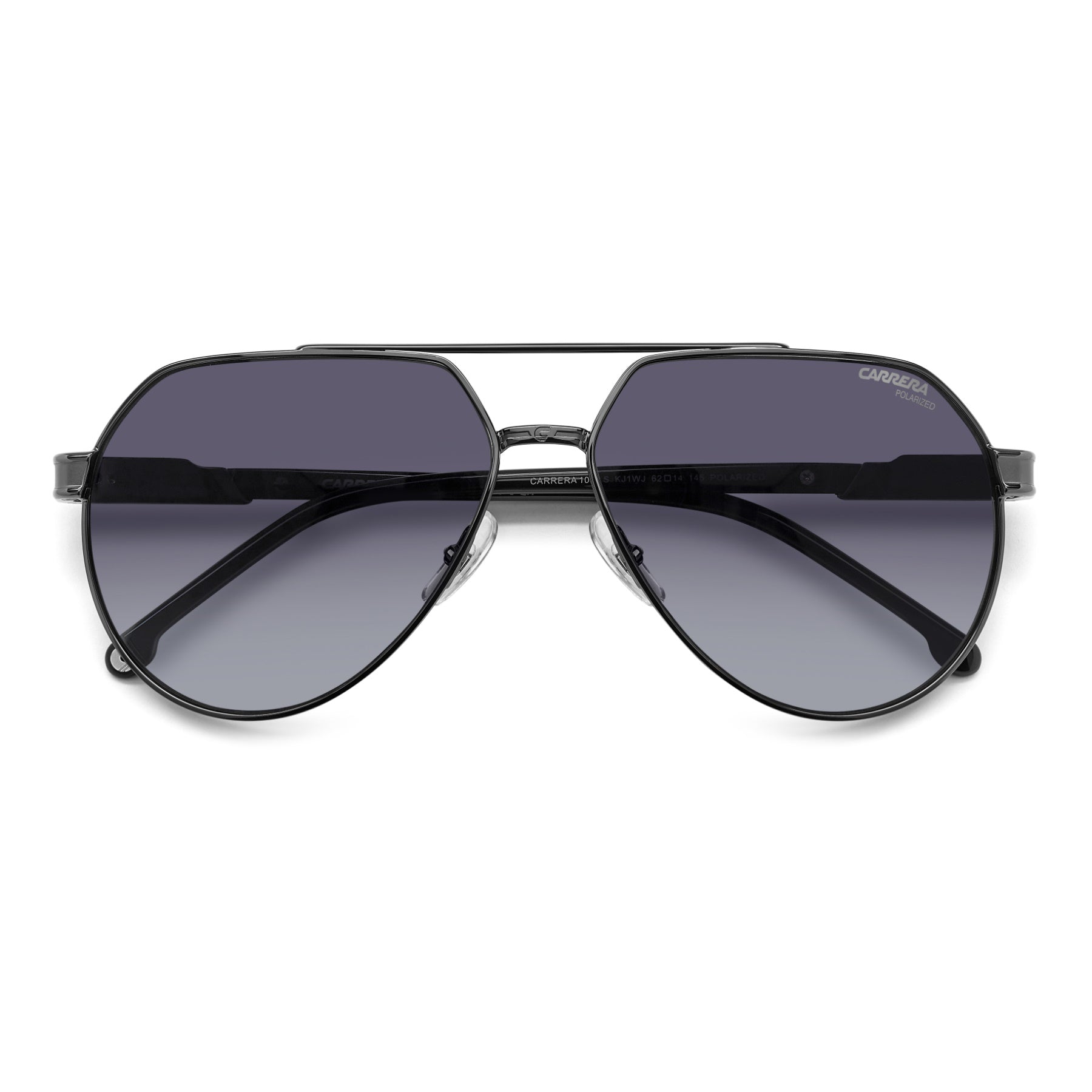 Pilot frames in metal and Carrera detailing: this is the recipe that creates the visual power of these unisex sunglasses. In true Carrera style, the front boasts a daring double bridge, accented by a laser-etched wordmark on the top. The list of high-tech qualities include flexible hinges and the option to fit the frames with prescription lenses. The off-the-shelf versions include different lenses: polar, or ultra polar with a gold-tone coating.