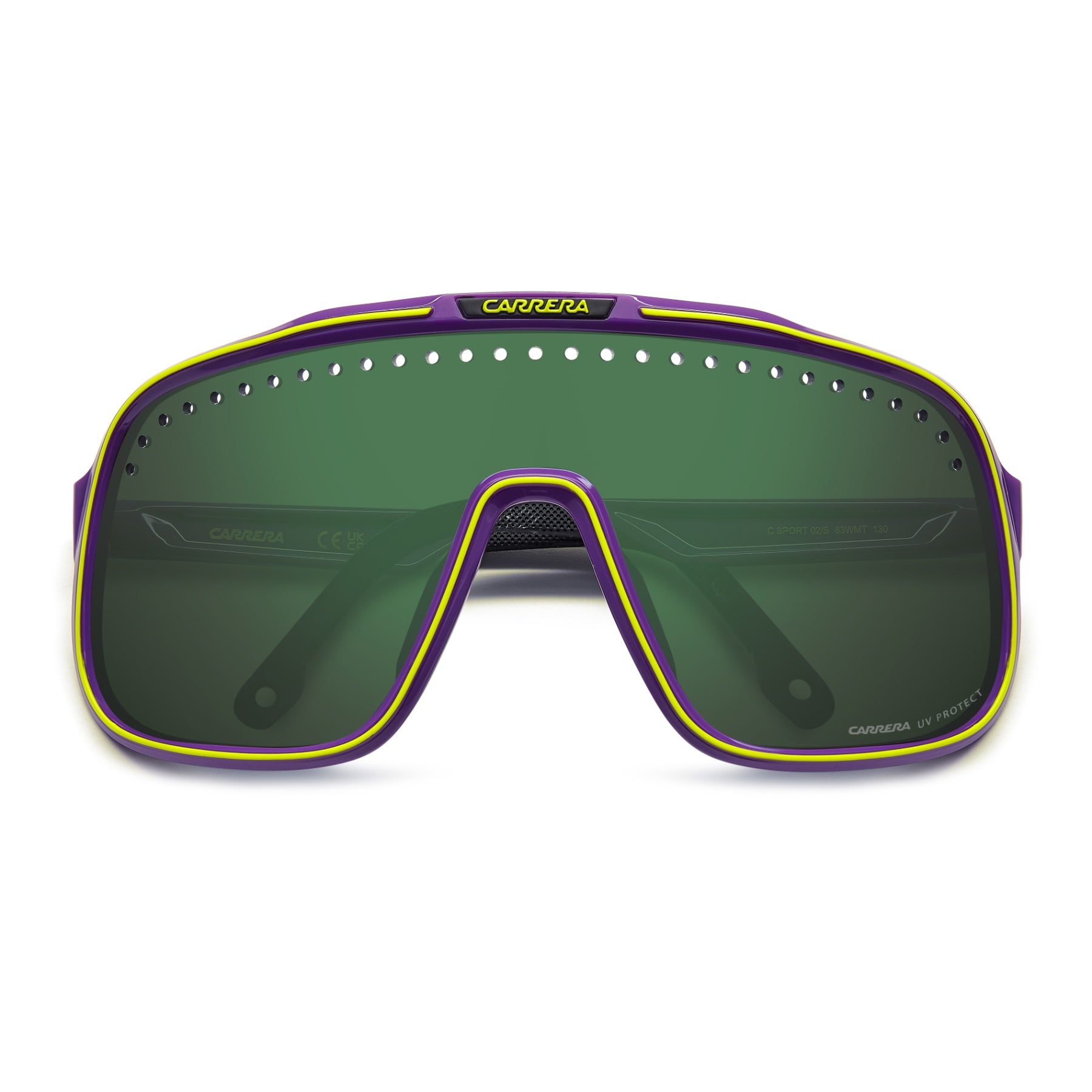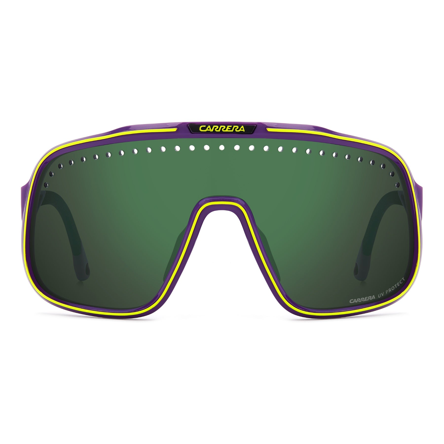 Inspired by sport and designed to be worn everywhere, these sunglasses express the bold style of Carrera. The shield front is decisive and on-trend as it wraps around to the sides, complete with perforations for added ventilation. The lens even comes in mirrored or high-contrast options. Impeccable with sporty outfits and unforgettable as part of street-style ensembles, these sunglasses are designed to be worn with ease, even under a helmet. The front is compatible with prescription clip-in lenses which can be purchased separately.