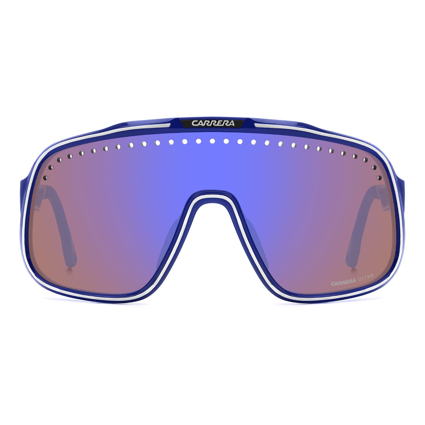 Inspired by sport and designed to be worn everywhere, these sunglasses express the bold style of Carrera. The shield front is decisive and on-trend as it wraps around to the sides, complete with perforations for added ventilation. The lens even comes in mirrored or high-contrast options. Impeccable with sporty outfits and unforgettable as part of street-style ensembles, these sunglasses are designed to be worn with ease, even under a helmet. The front is compatible with prescription clip-in lenses which can be purchased separately.