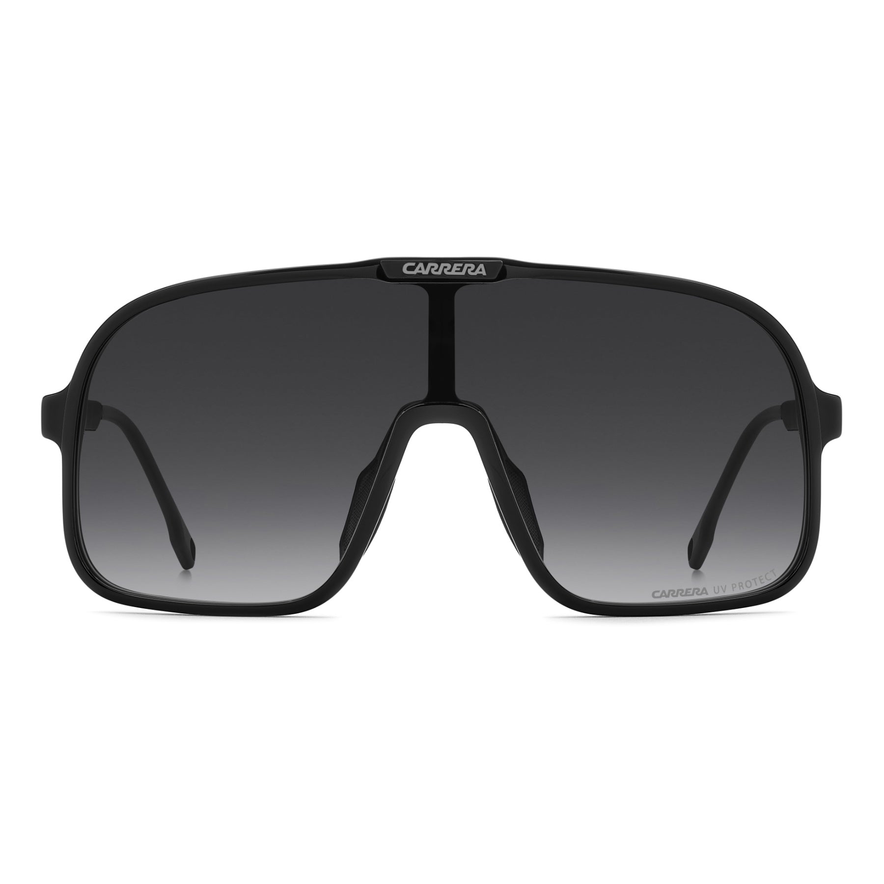 These sunglasses bring a fresh twist to Carrera's archival designs. The maxi-lens navigator front in acetate showcases sporty heritage, made even more iconic with multi-layer detailing. Rubber nose pads and adjustable curved end tips ensure a secure fit. The color palette includes a version with blue gradient lenses that's distinctively Carrera.