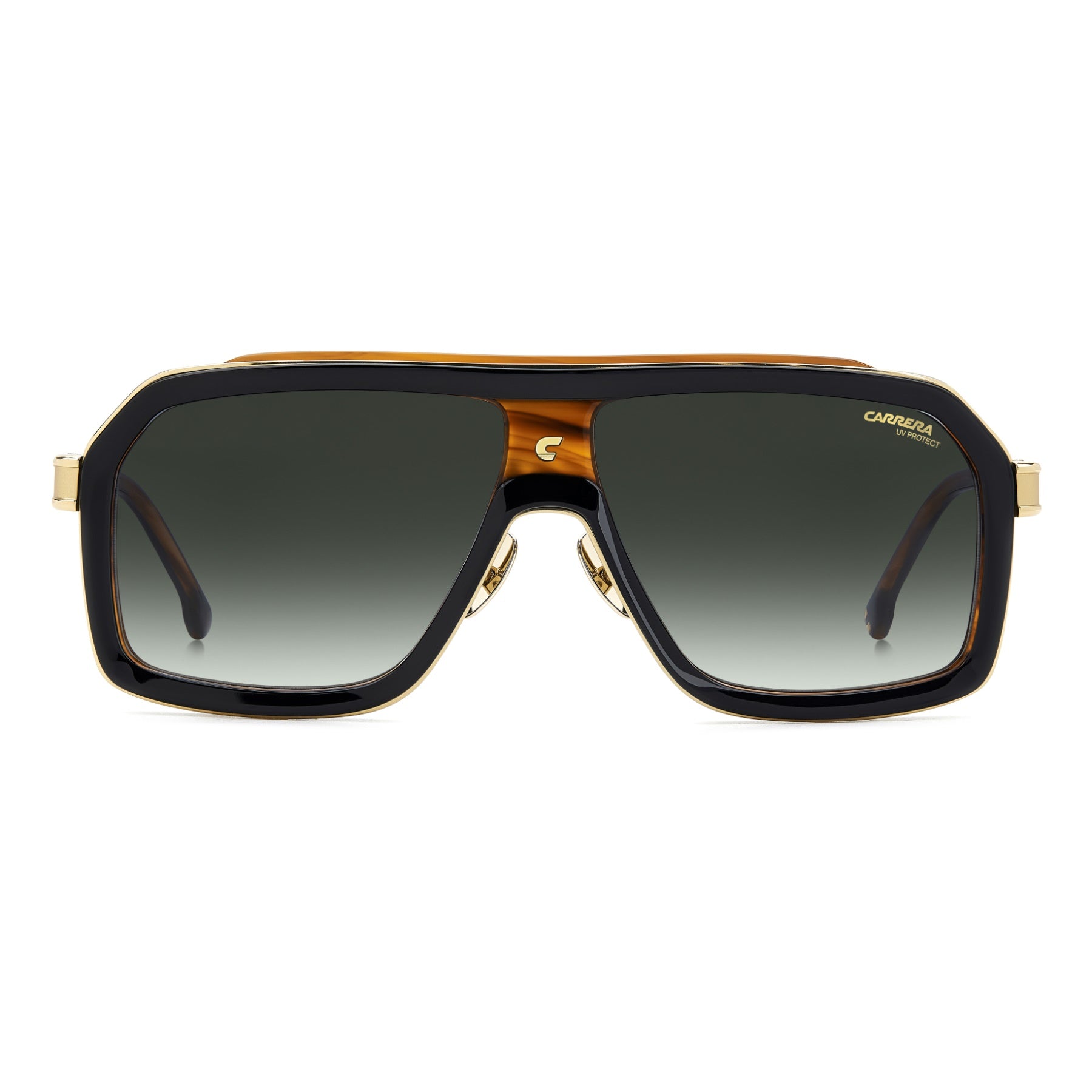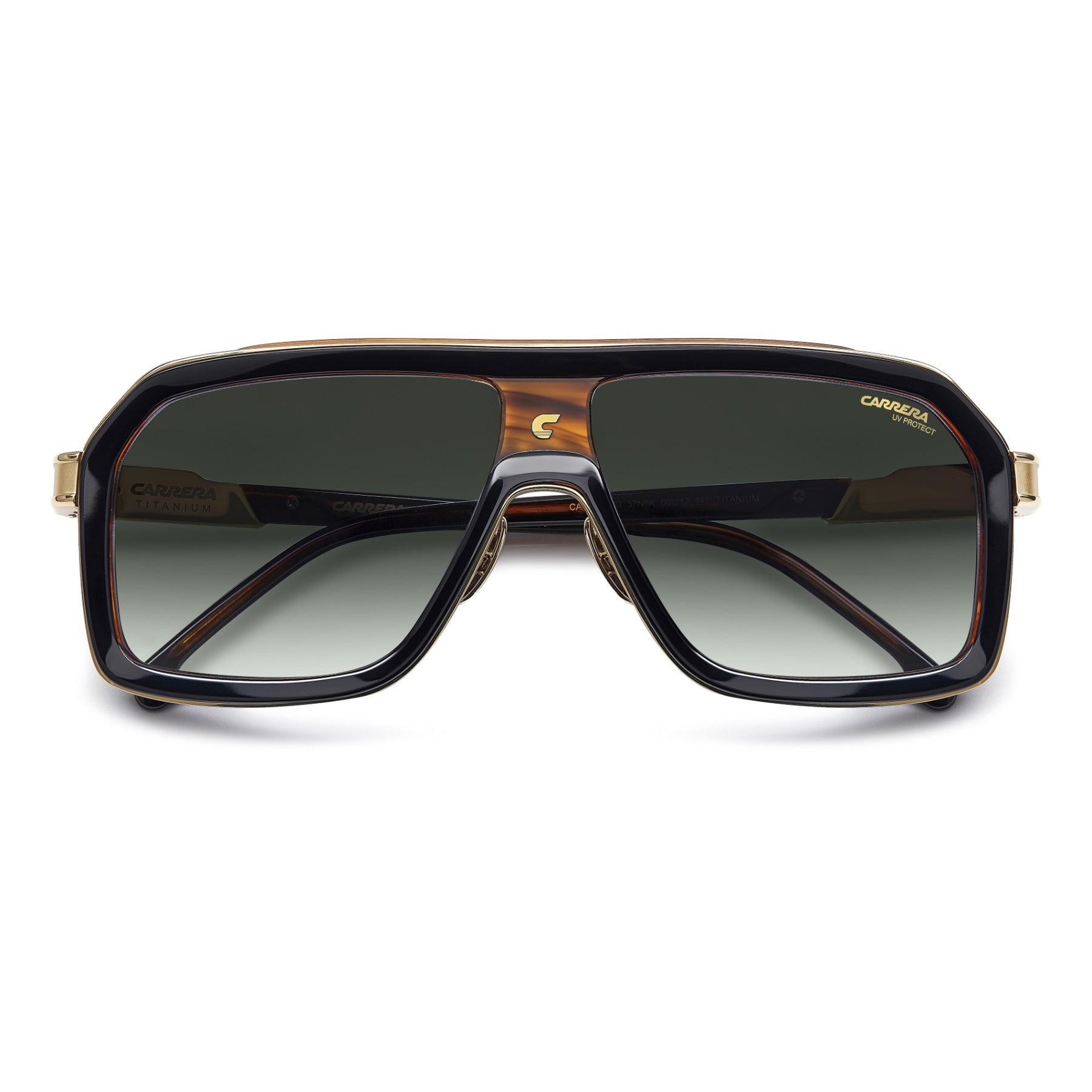 Carrera is always a step ahead, and it shows with these iconic sunglasses. The structure in titanium - an ultralight premium material - makes them special, with a high-impact acetate coating. With a brow bar along the top and the Carrera ‘C’ in the space between the lenses, this style truly has it all. Flex hinges, adjustable nose pads blended with Carrera iconic boldness make it a pair to wear at all times.