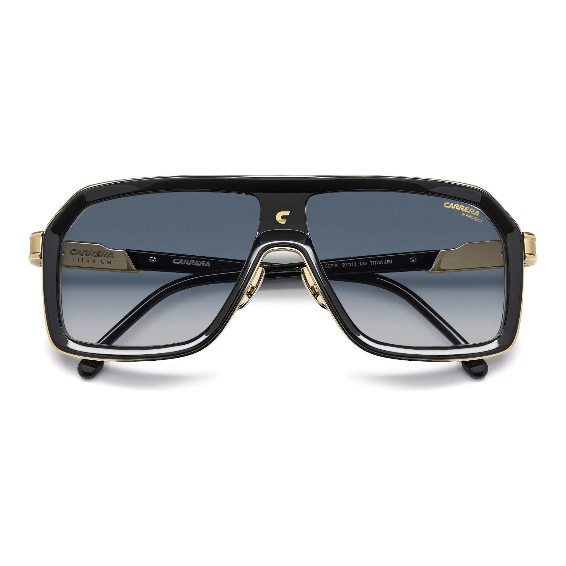 Carrera is always a step ahead, and it shows with these iconic sunglasses. The structure in titanium - an ultralight premium material - makes them special, with a high-impact acetate coating. With a brow bar along the top and the Carrera ‘C’ in the space between the lenses, this style truly has it all. Flex hinges, adjustable nose pads blended with Carrera iconic boldness make it a pair to wear at all times.