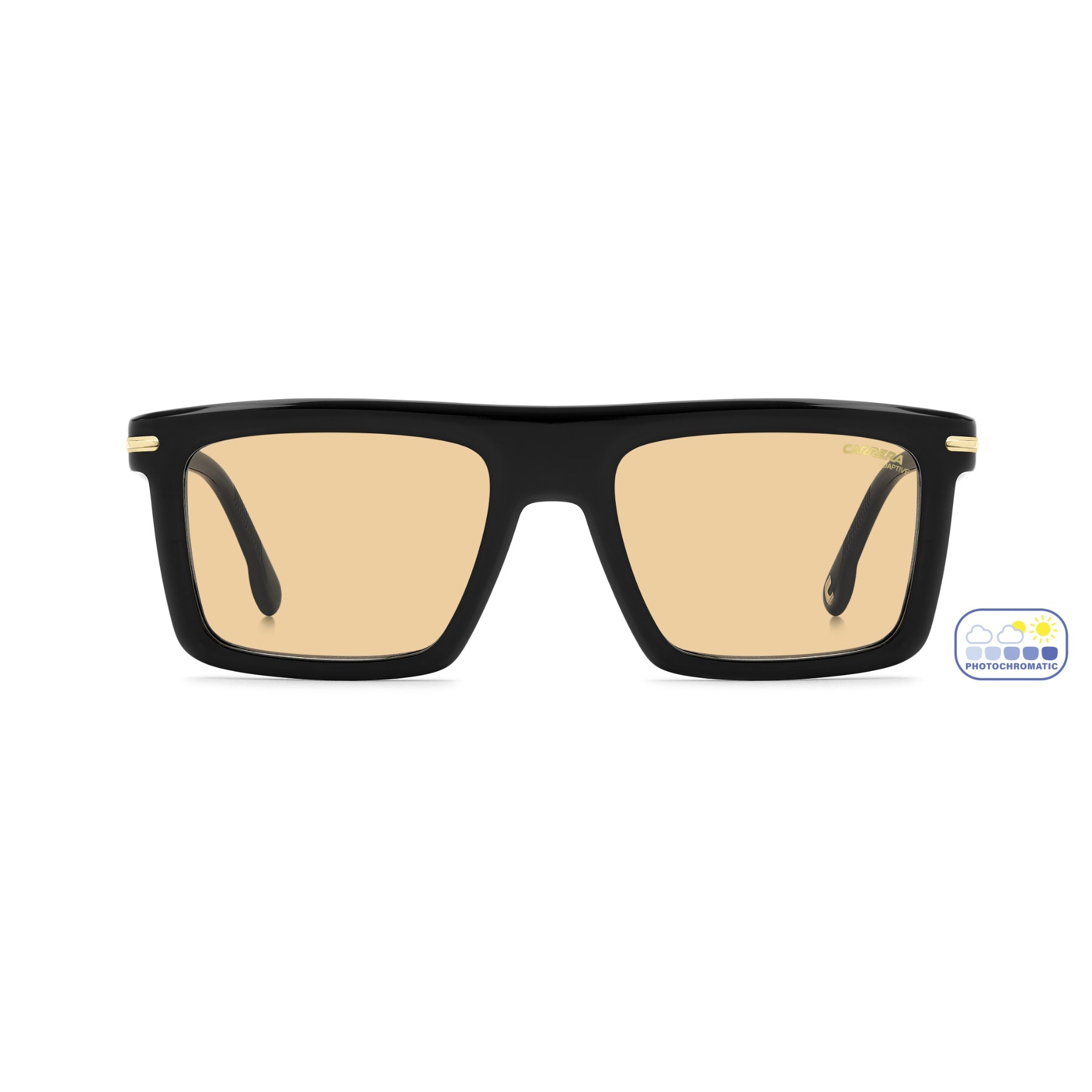 These Carrera sunglasses deliver unforgettable style. The rectangular front features a distinctive flat top that makes its own statement. The frames are thin and light without compromising character. Choose the blue gradient lenses or the photochromic option that adapts to changing light.