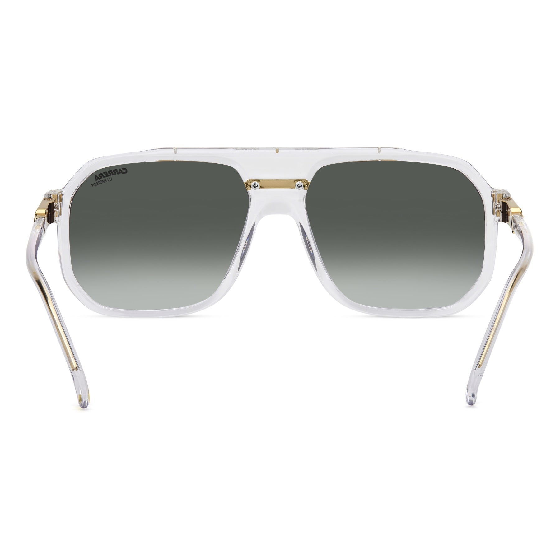 These sunglasses add style to any outfit. The navigator front has clean, bold lines with the Carrera C logo between the lenses. The temples combine metal and acetate, either transparent or solid to match the frames. Polarized and mirrored lenses are available.