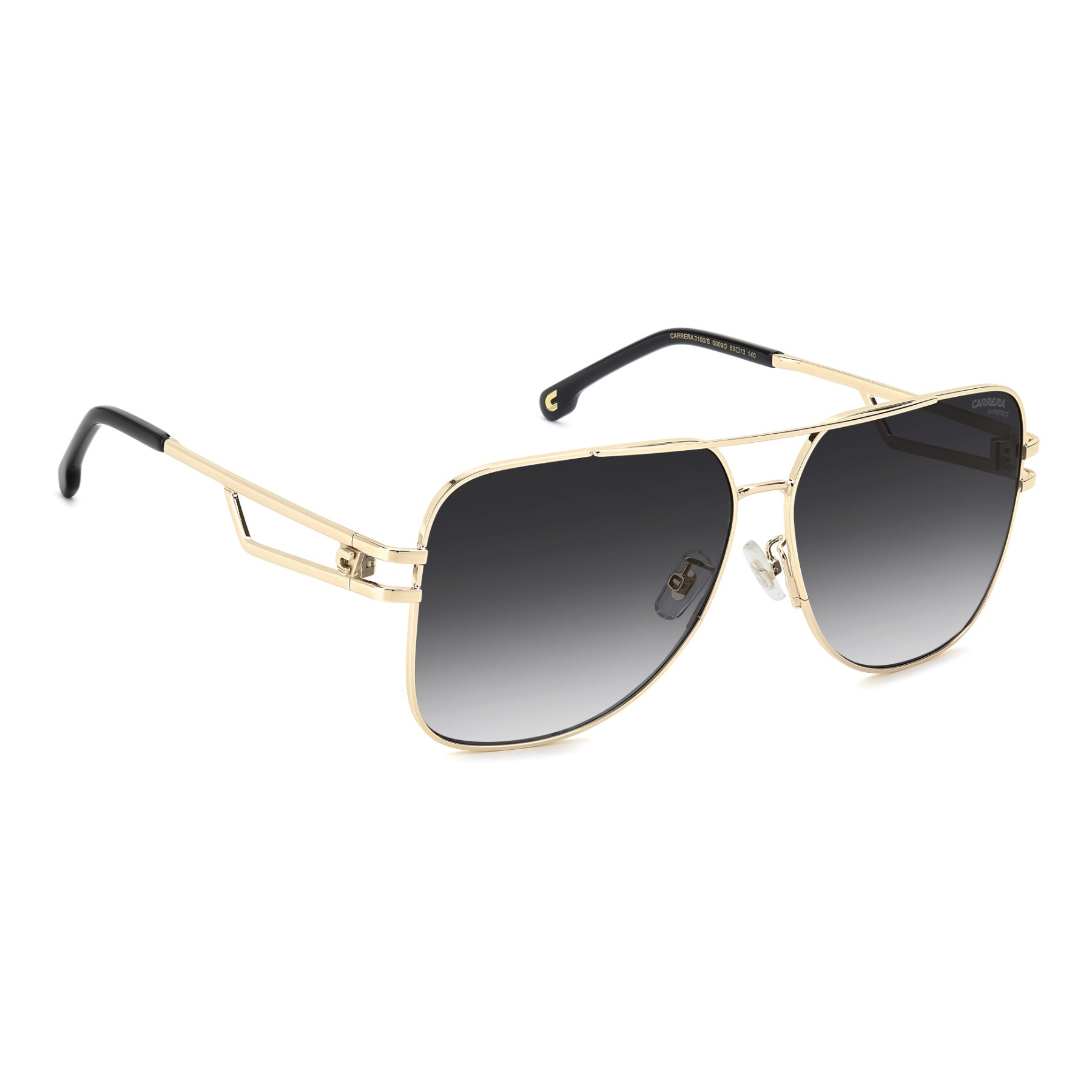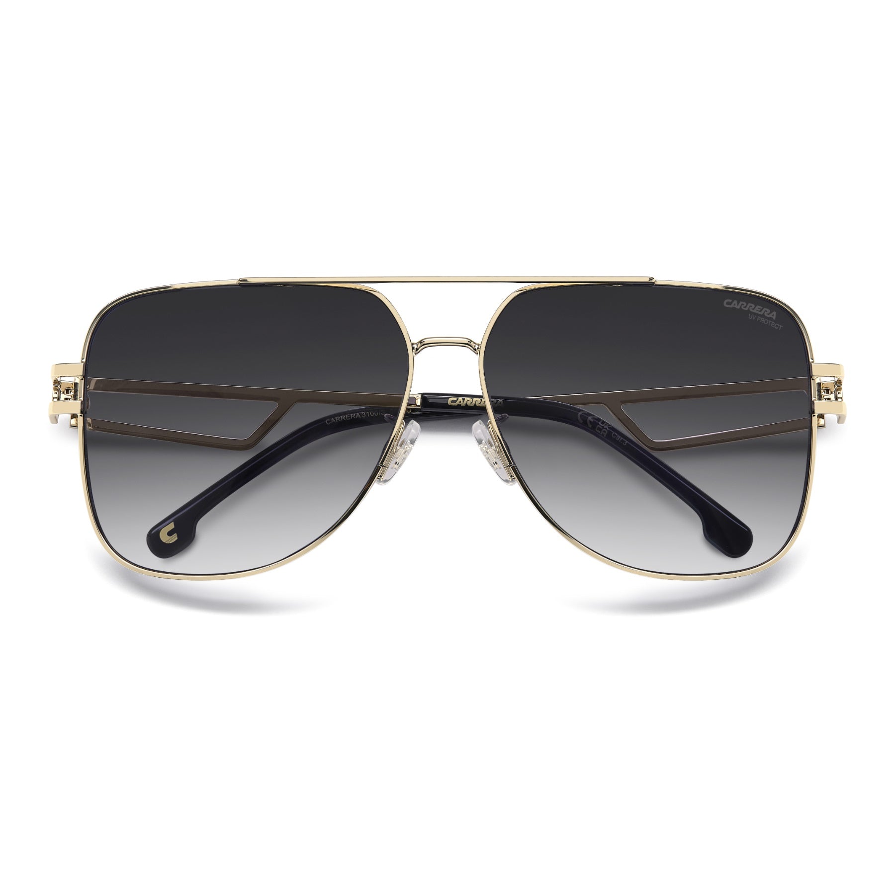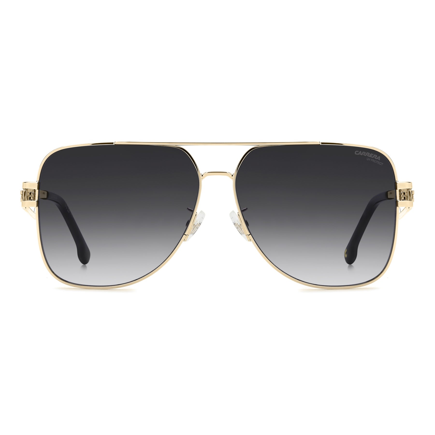 Achieve an instantly iconic look with these Carrera sunglasses. The double-bridge navigator front takes centre stage, and the new open temples enhance the elegant, lightweight design. They are also available with touches of colour. Choose from gradient or mirrored lenses to complete the unforgettable style.