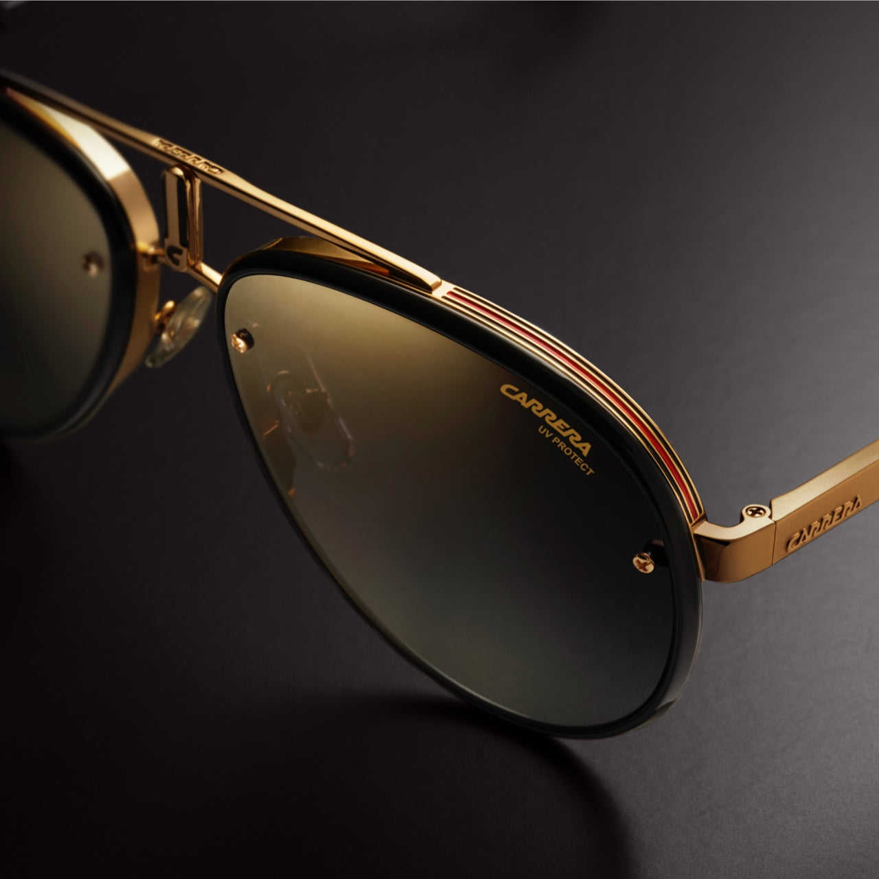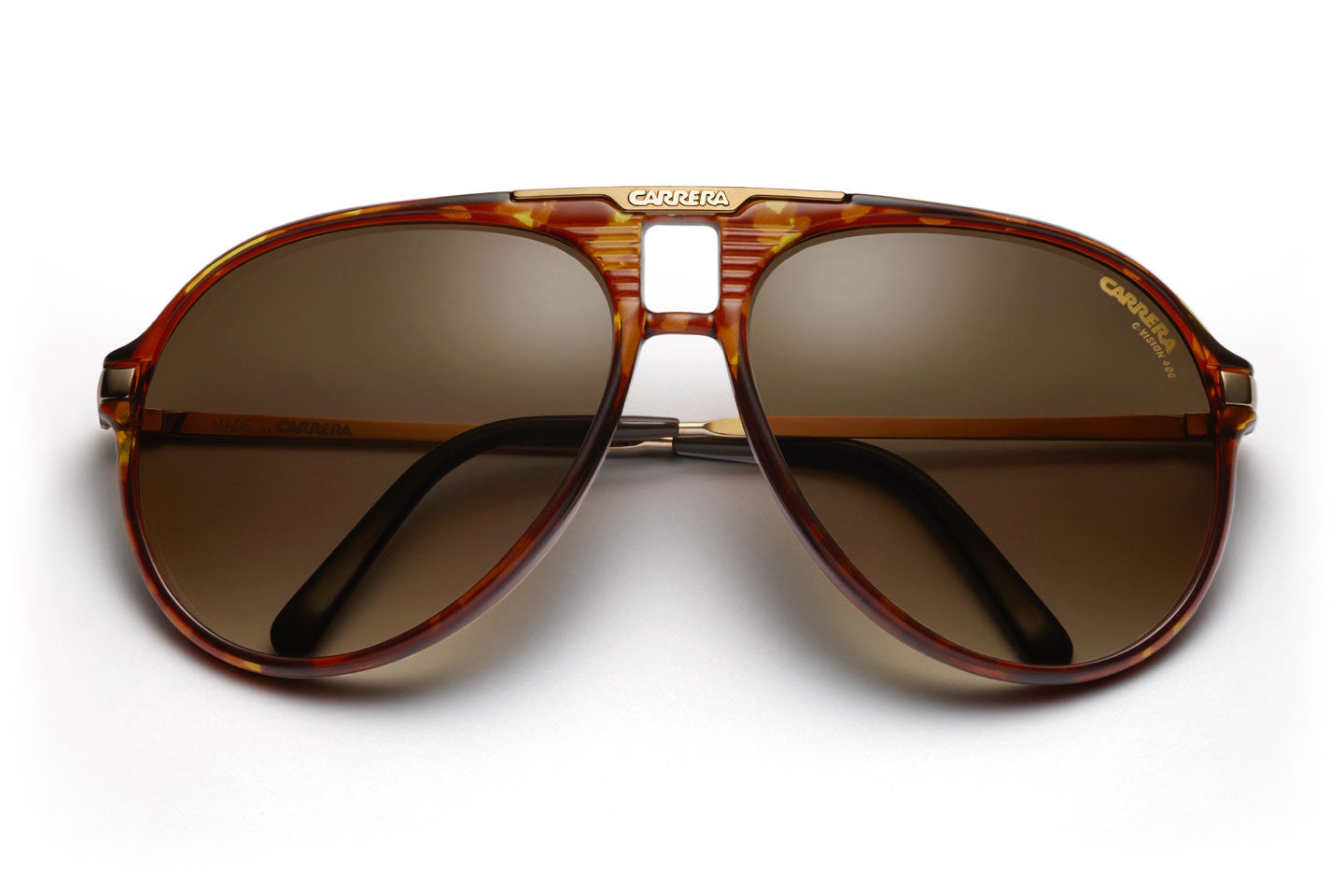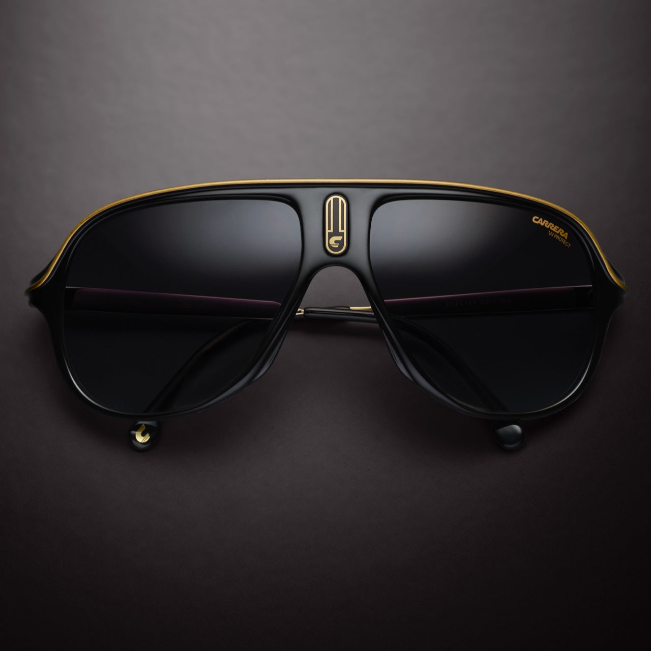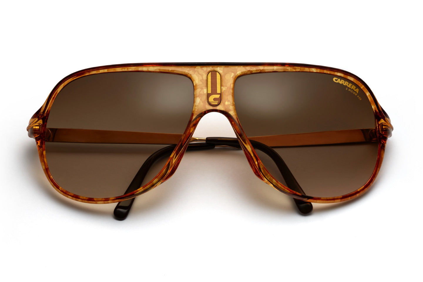 With this choice, Carrera broke the golden rules in the eyewear industry, which called for a clean-cut and understated front design, and created the signature detail that from then on would identify the brand.
