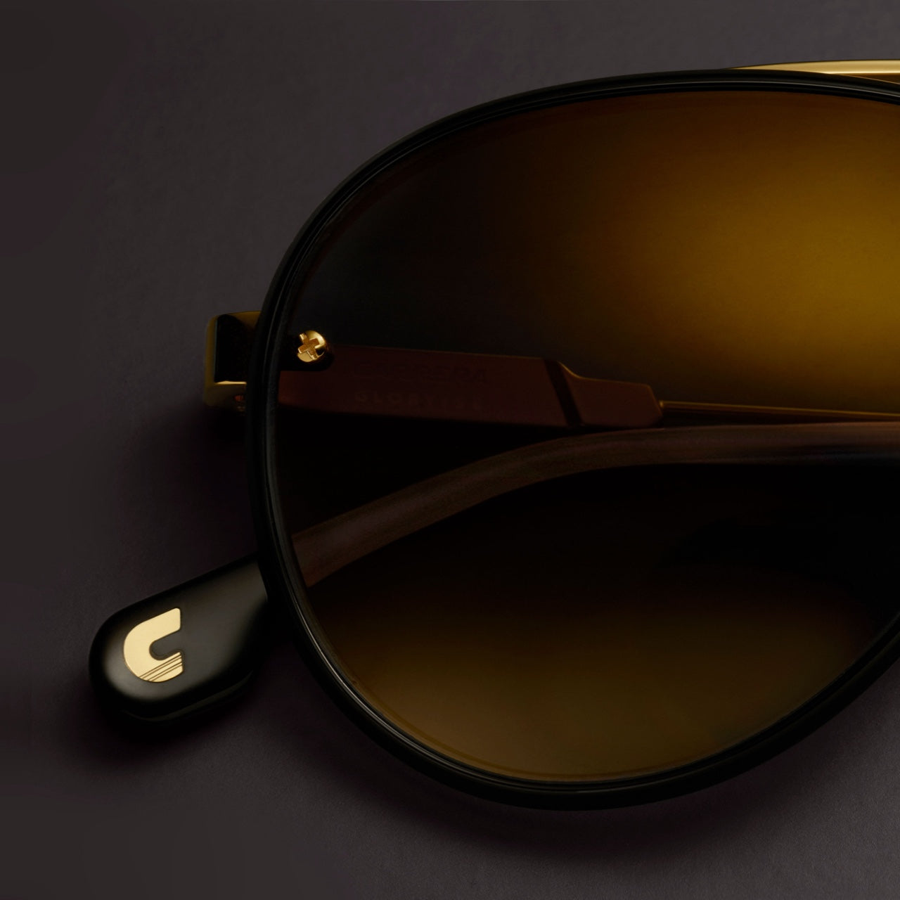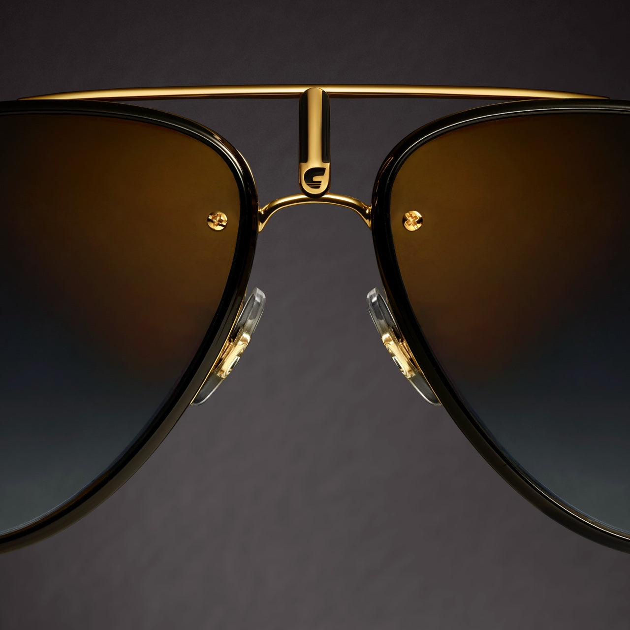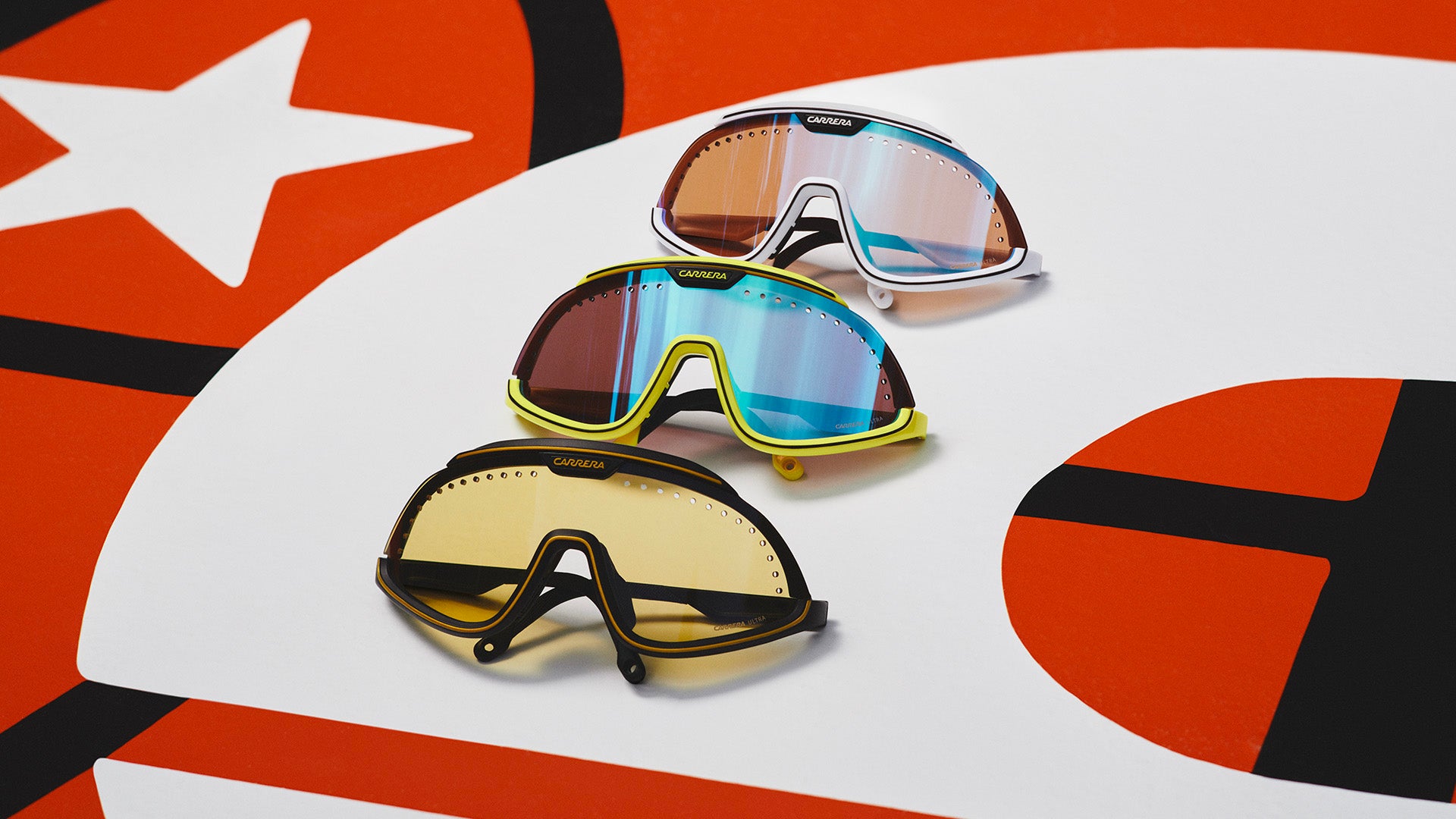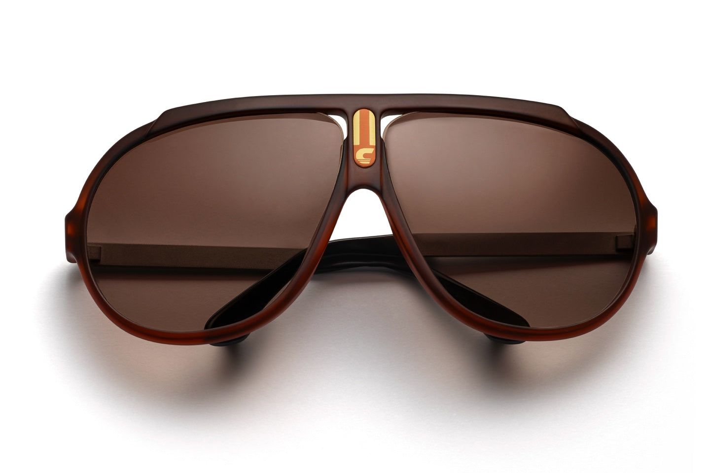 With this choice, Carrera broke the golden rules in the eyewear industry, which called for a clean-cut and understated front design, and created the signature detail that from then on would identify the brand.
