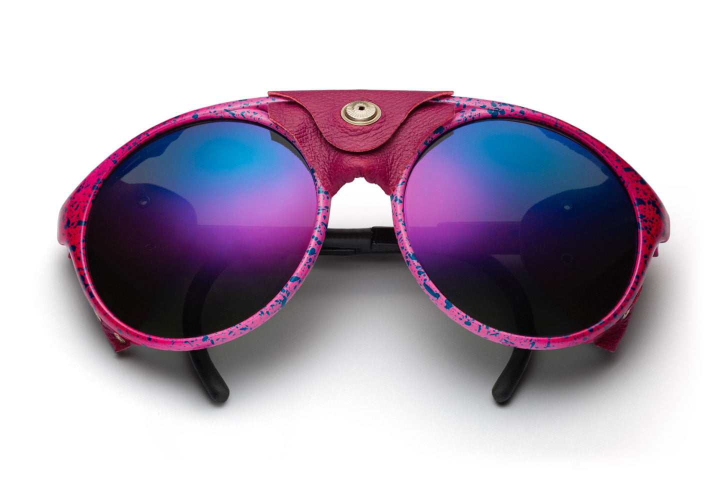An unmistakable design: its unique shape is a synthesis of the proportions of ski goggles, translated into a pair of sunglasses.