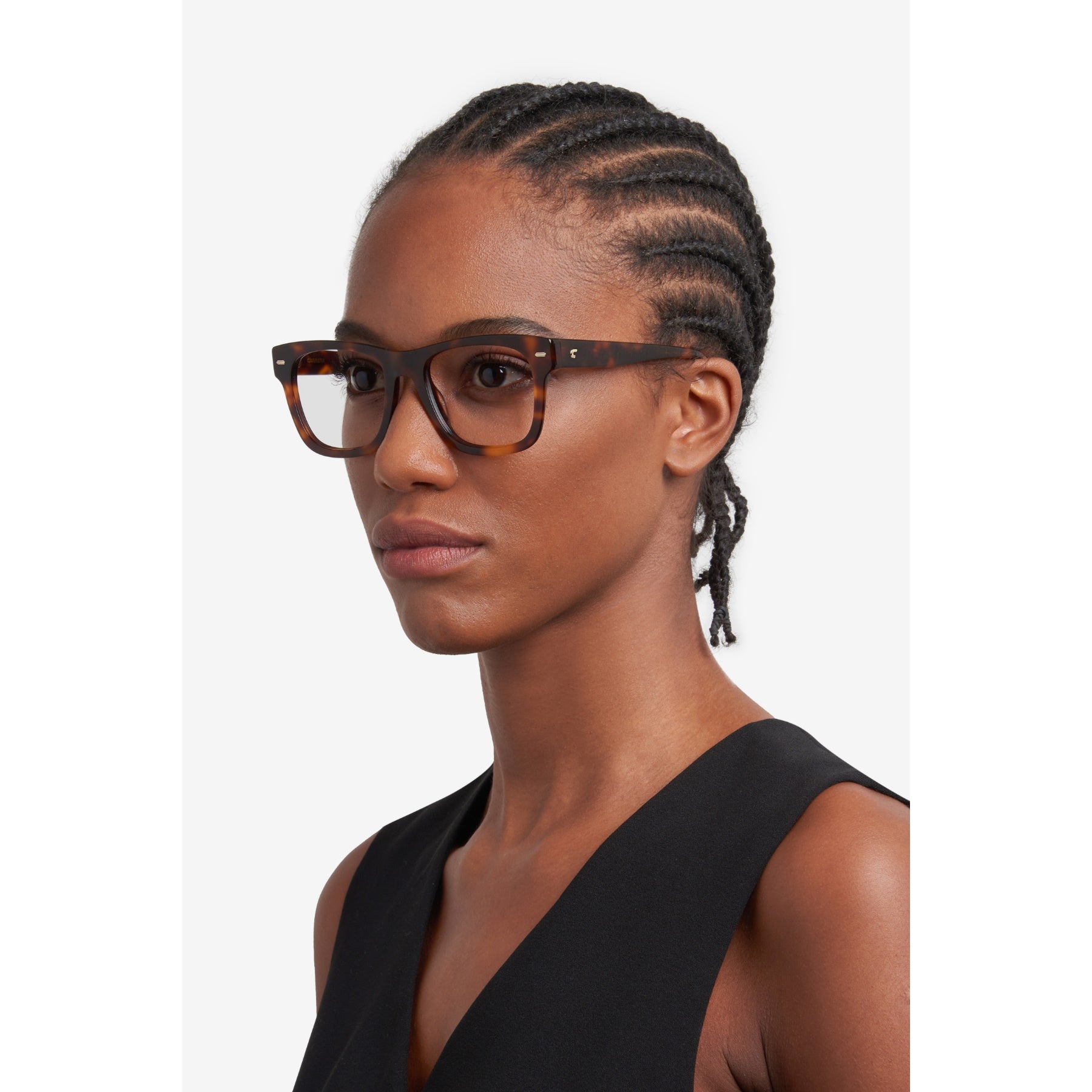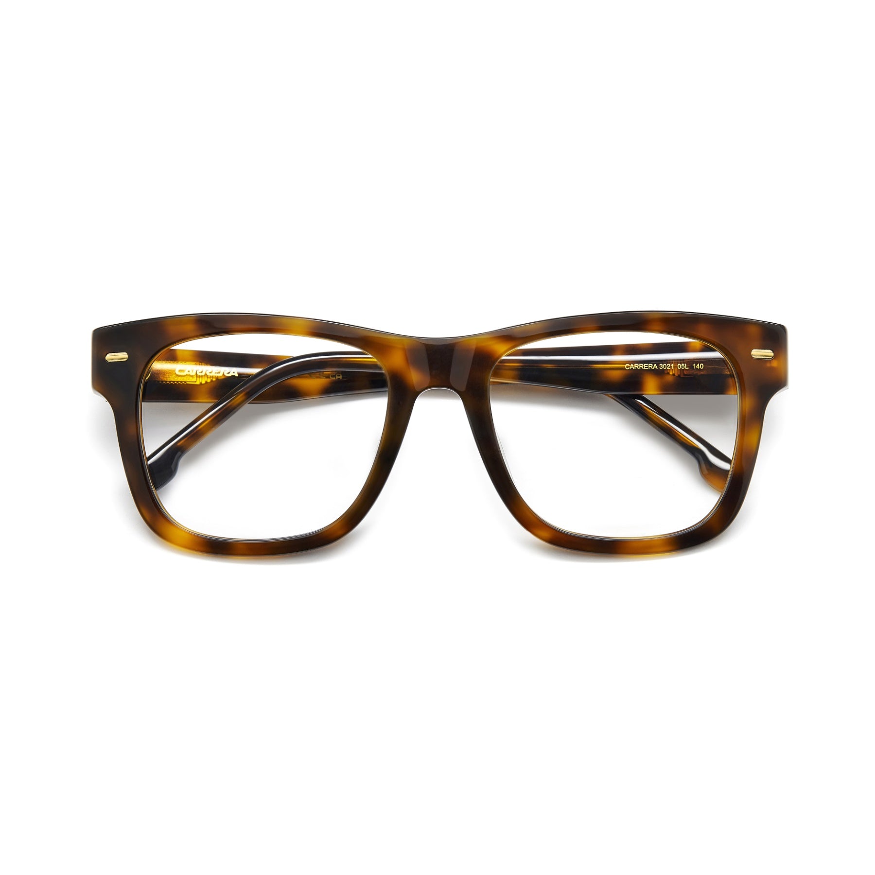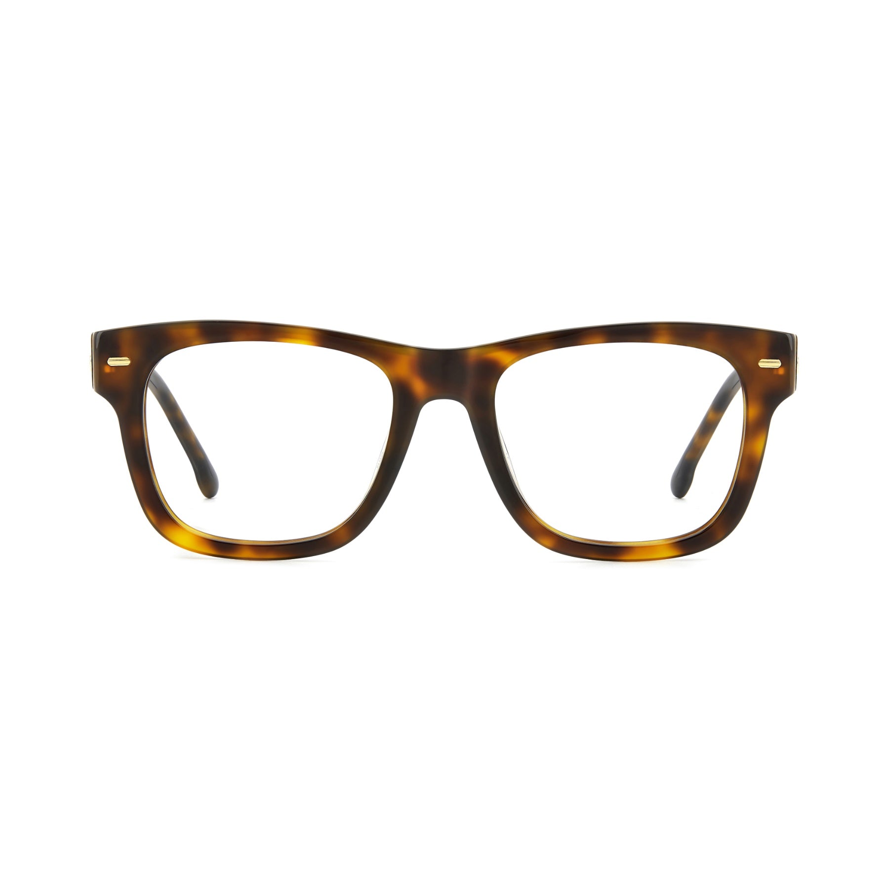 The women's eyewear collection by Carrera has been enriched by these eyeglasses, the perfect accessory to flaunt day after day. The rounded square shape and the bold proportions are accompanied by an elegant colour palette, which includes transparent options. They wouldn’t be complete without precious details, such as the rivets on the front and the raised ‘C’ detail on the temples.