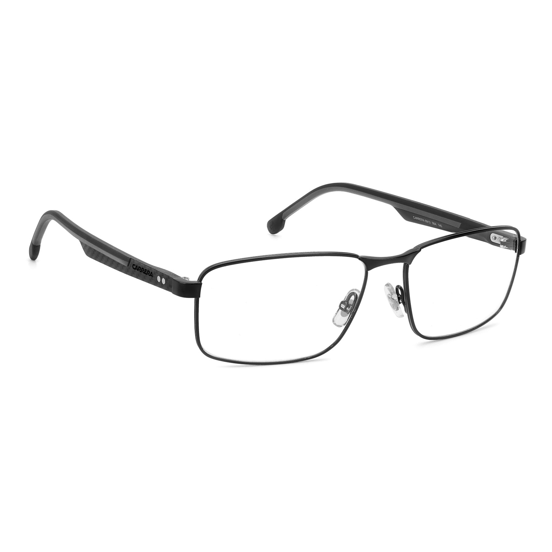 Carrera has chosen carbon fibre for these premium eyeglasses, using this lightweight and durable material for the slender temples and giving it a textural surface. The rubber-coated end tips increase their comfort, in contrast or tone-on-tone colours. With rectangular frames in lightweight stainless steel and adjustable nose pads, you’ll be sure to stay focused on the objectives on the horizon. For concrete style that’s without frills and distractions.