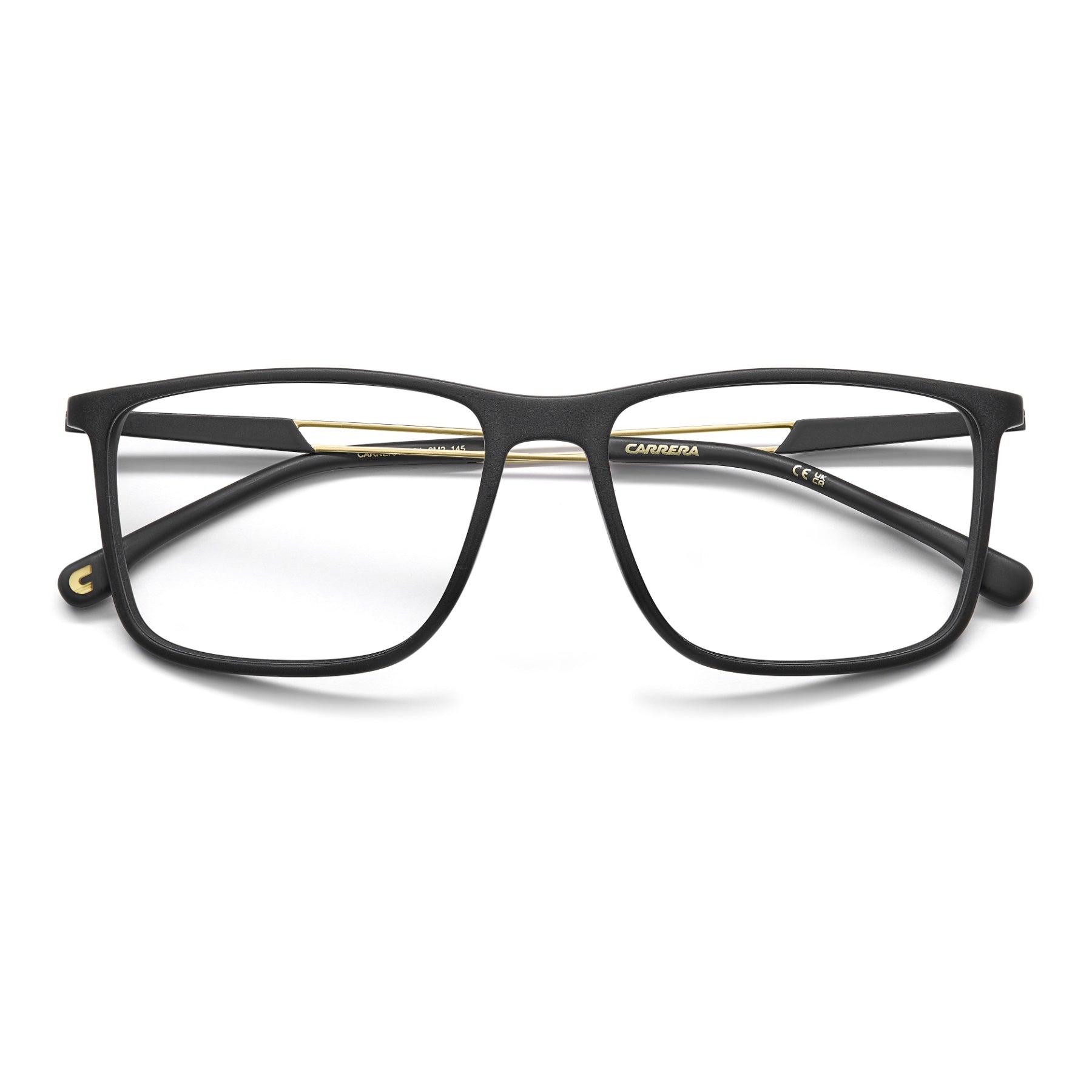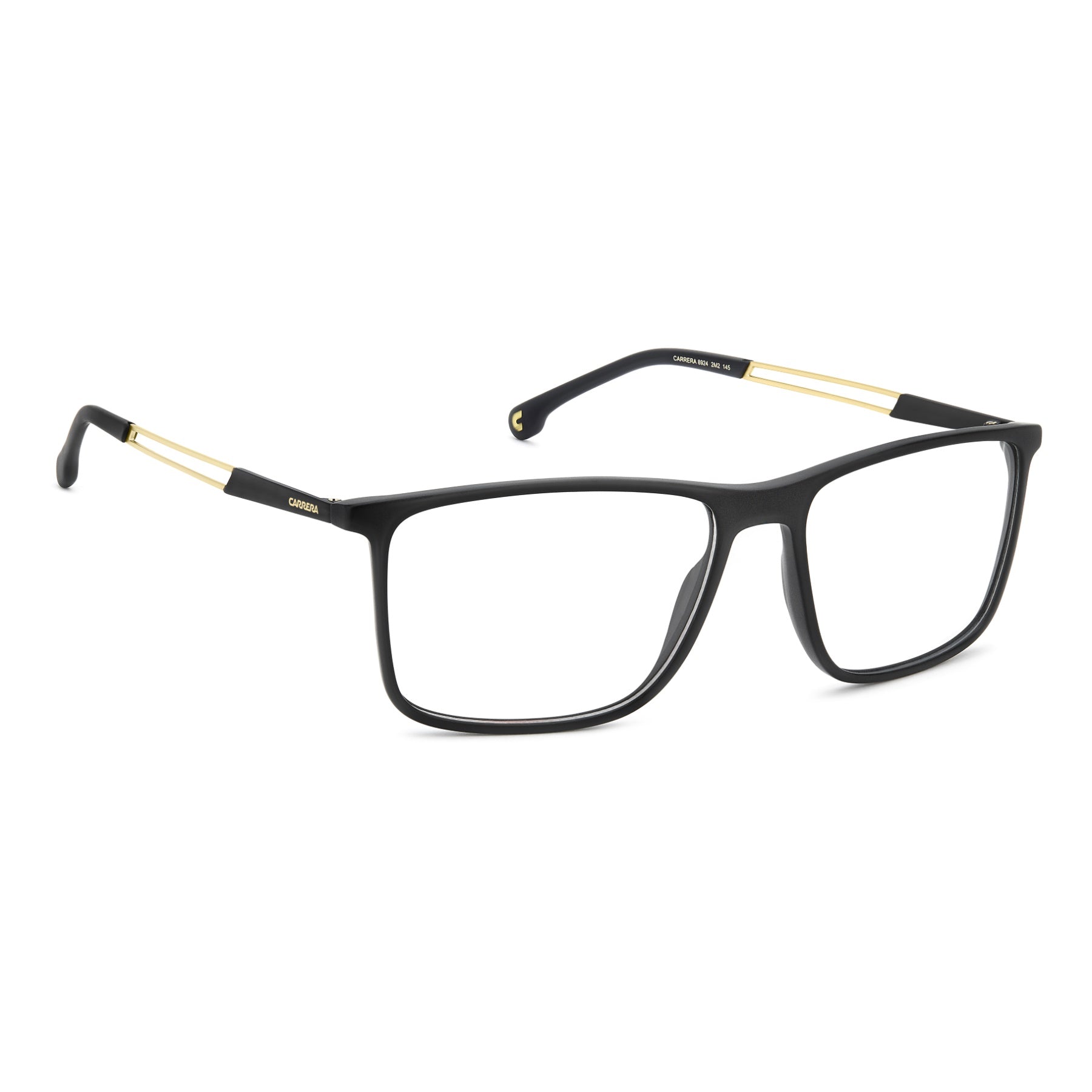 These Carrera eyeglasses combine practicality, high-tech details and clean lines. Made for everyday wear, their design focuses on lightness and ease of use. The stainless steel temples feature a cut-out tubular shape to keep weight minimal. Pops of colour add a sporty touch. Two sizes are available to ensure the perfect fit.