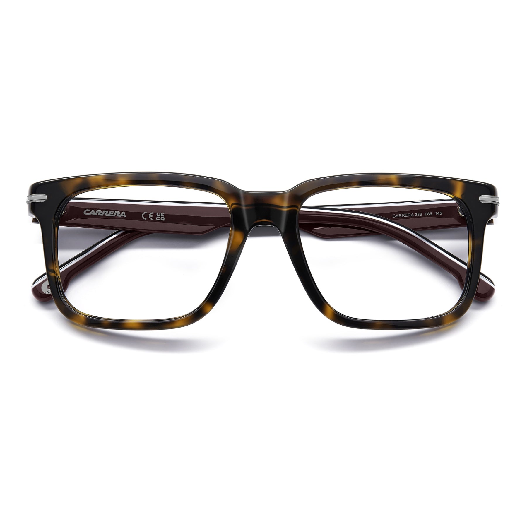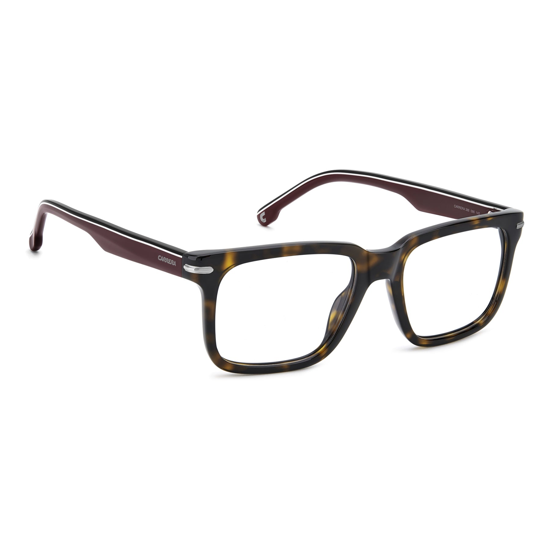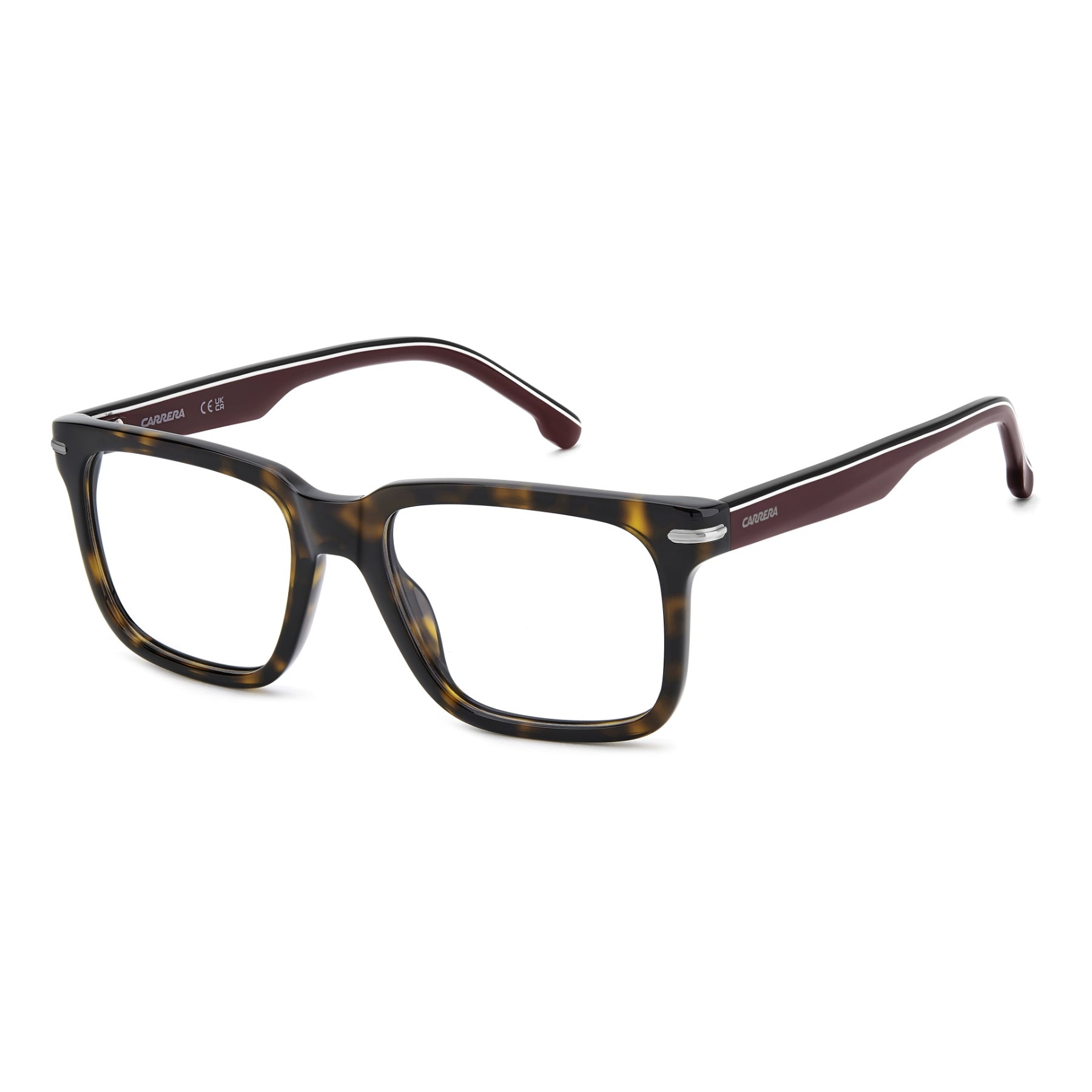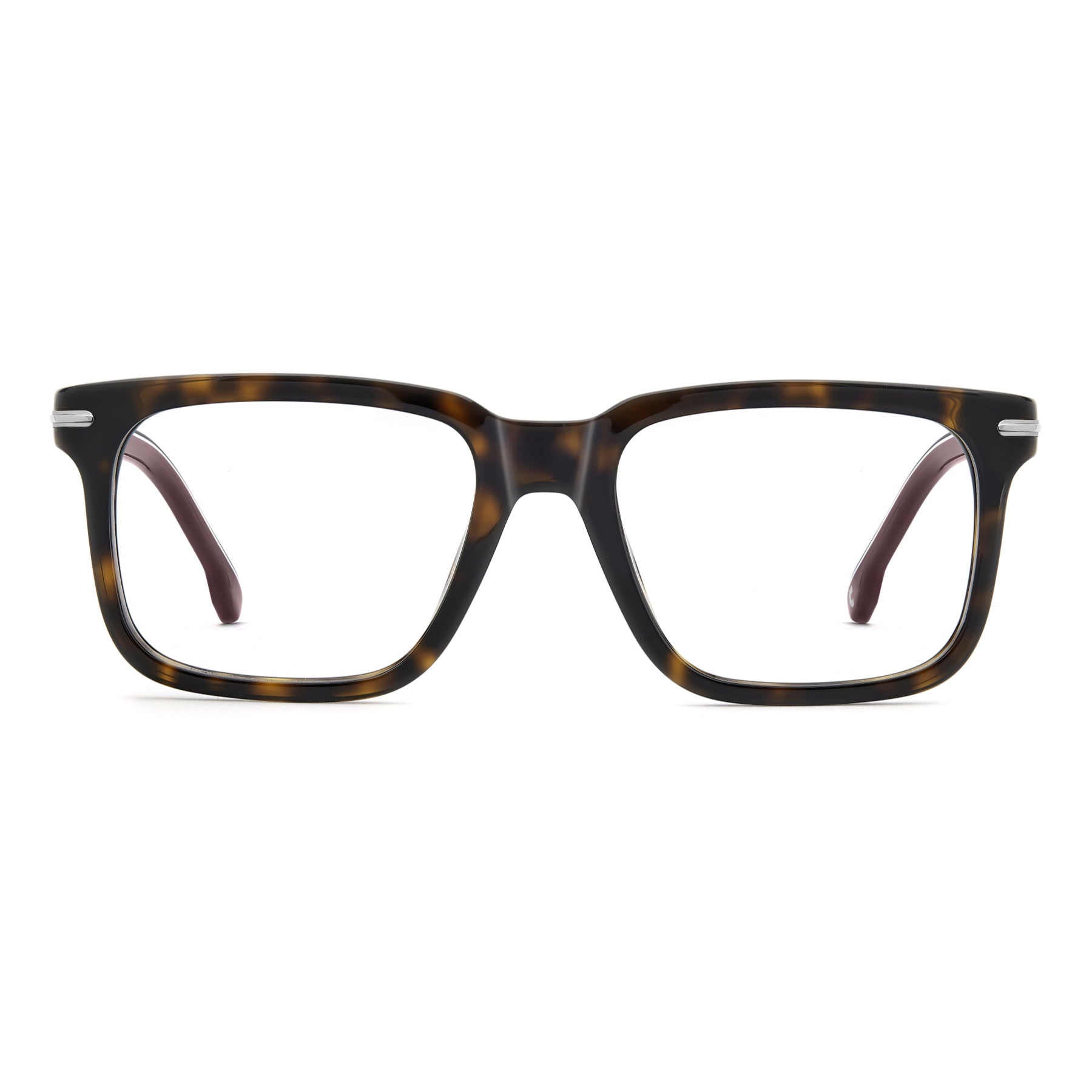 These Carrera optical glasses are bold and full of character. Crafted in acetate, this style features a square front that's ultra-light thanks to its slim profile. It's finished with metal accents that echo the signature flag logo. The options featuring the Grand Prix temples are iconic and timeless, a tribute to Carrera's DNA.