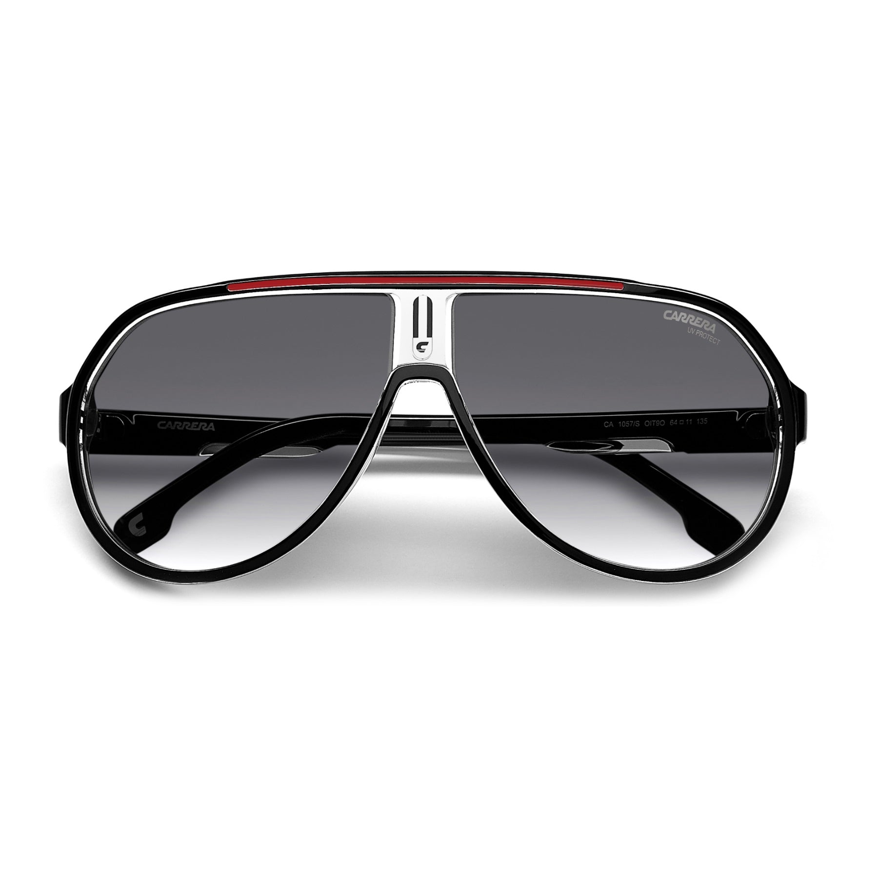 These aviator sunglasses, typical of the brand, are the redesign of a Carrera classic. They stand out from the crowd thanks to the cult tailored details such as the "C" on the front, the lettering logo and Carrera's trademark flag on the sculpted temples. This accessory is available with gradient or polarised lenses and combines futuristic details with a retro design.