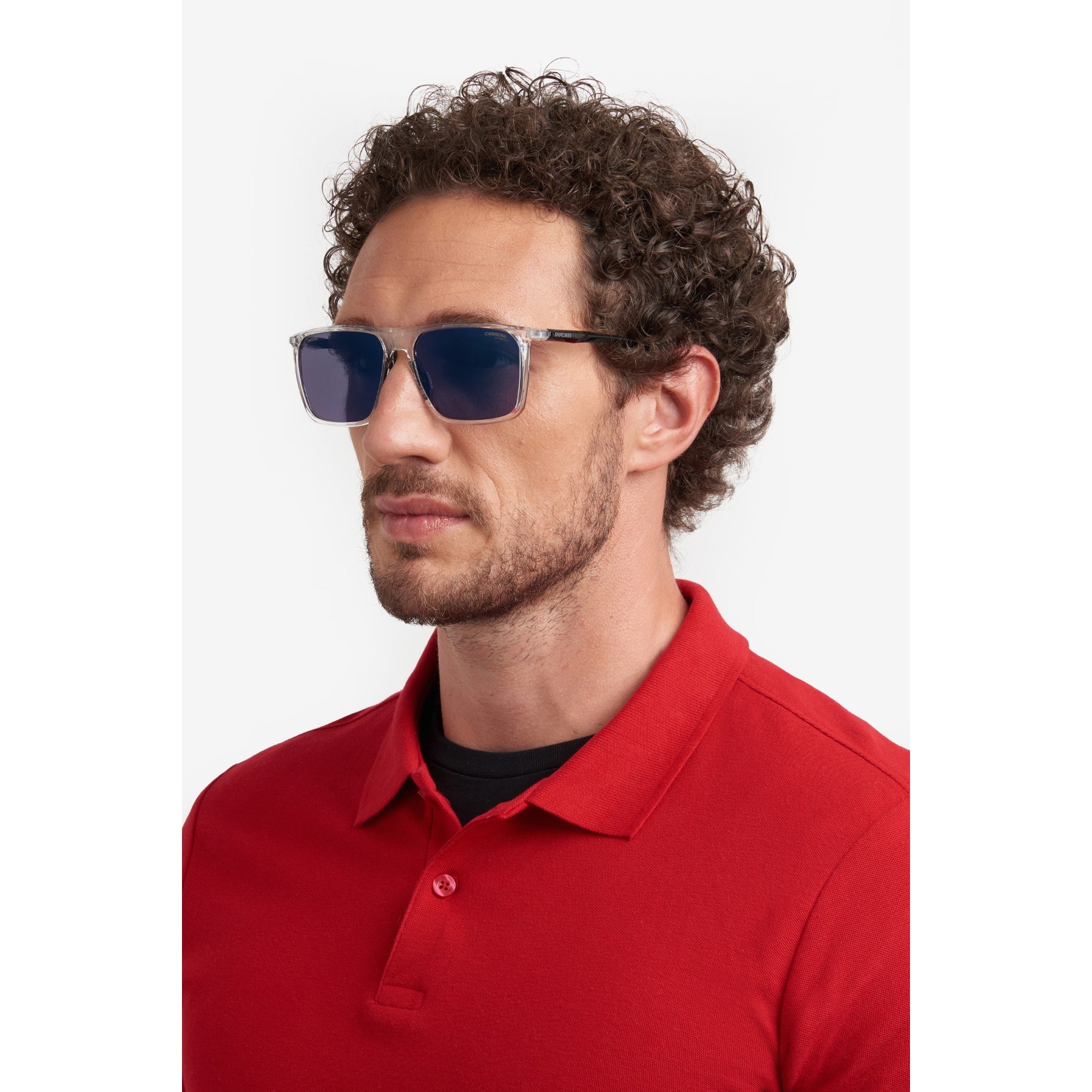 Wearing these Carrera | Ducati sunglasses is one way to be on-trend while also being part of the world of sport and speed. Their striking design arises from the square frames that are flat along the top. An accessory designed for performance: the slim, straight temples that extend into shiny rubber end tips ensure they fit easily under a helmet. Optimal vision is guaranteed by the lenses, which come in mirrored or ultrapolar options. Alternatively, the frames can be fitted with prescription lenses.