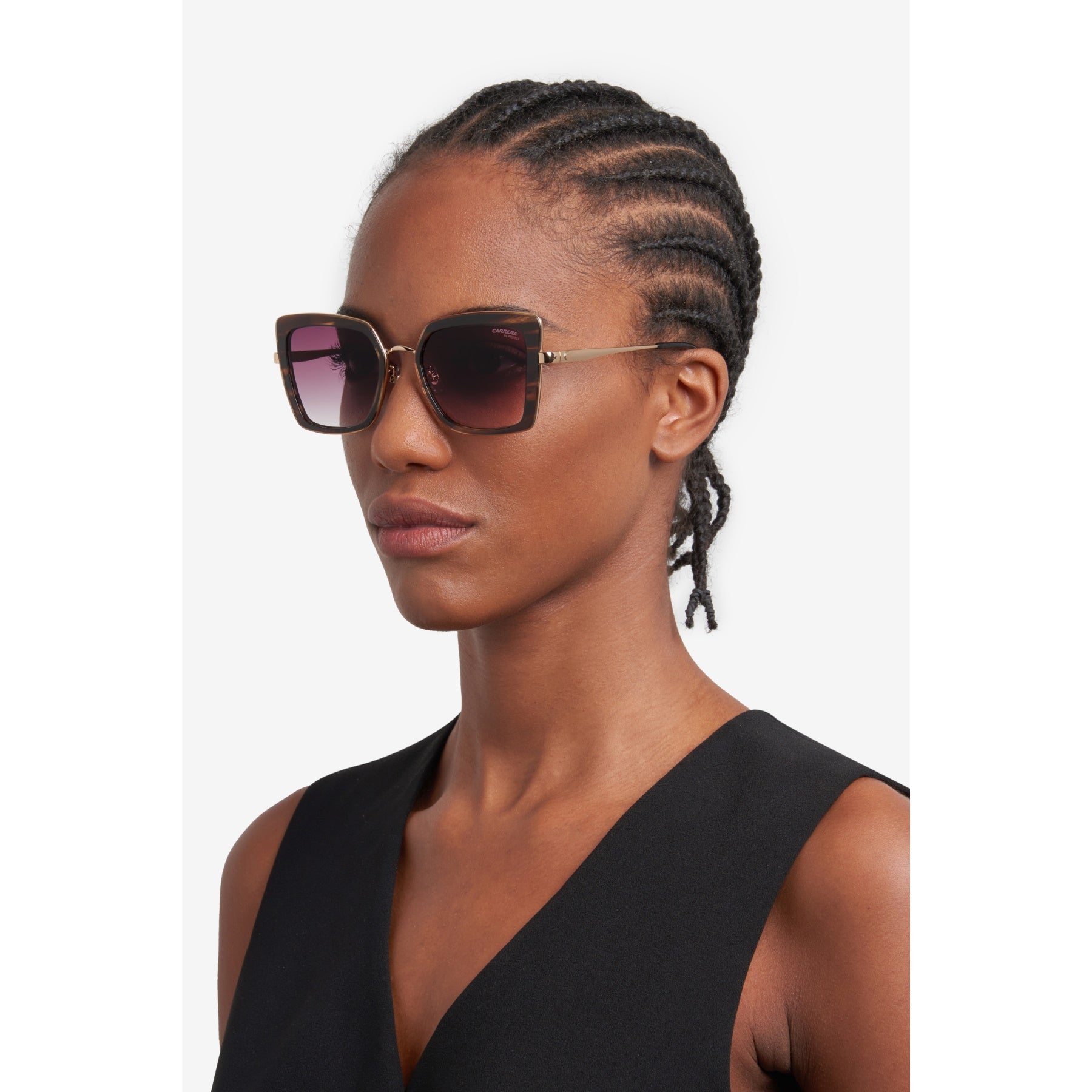Meticulous manufacturing makes these Carrera women’s sunglasses truly special. Their sophisticated look is created by a stainless steel frame overlapped by acetate in a juxtaposition of impeccably layered materials. The metal temples are tapered and light, trimmed by a fine laser-engraved Carrera ‘C’. The frames can be fitted with prescription sun lenses, which are also offered in a mirrored version for quintessential iconic style.