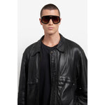 These Carrera sunglasses bring a sporty attitude to fashion. The shield front is profiled by acetate, printed with a logo on the lens. The temples are a true gem: their round vents echo the design of the steering wheels on the classic cars which raced in the Carrera Panamericana. Versions with yellow or orange lenses give rise to a truly evocative look. This collector's item comes with its own special packaging.