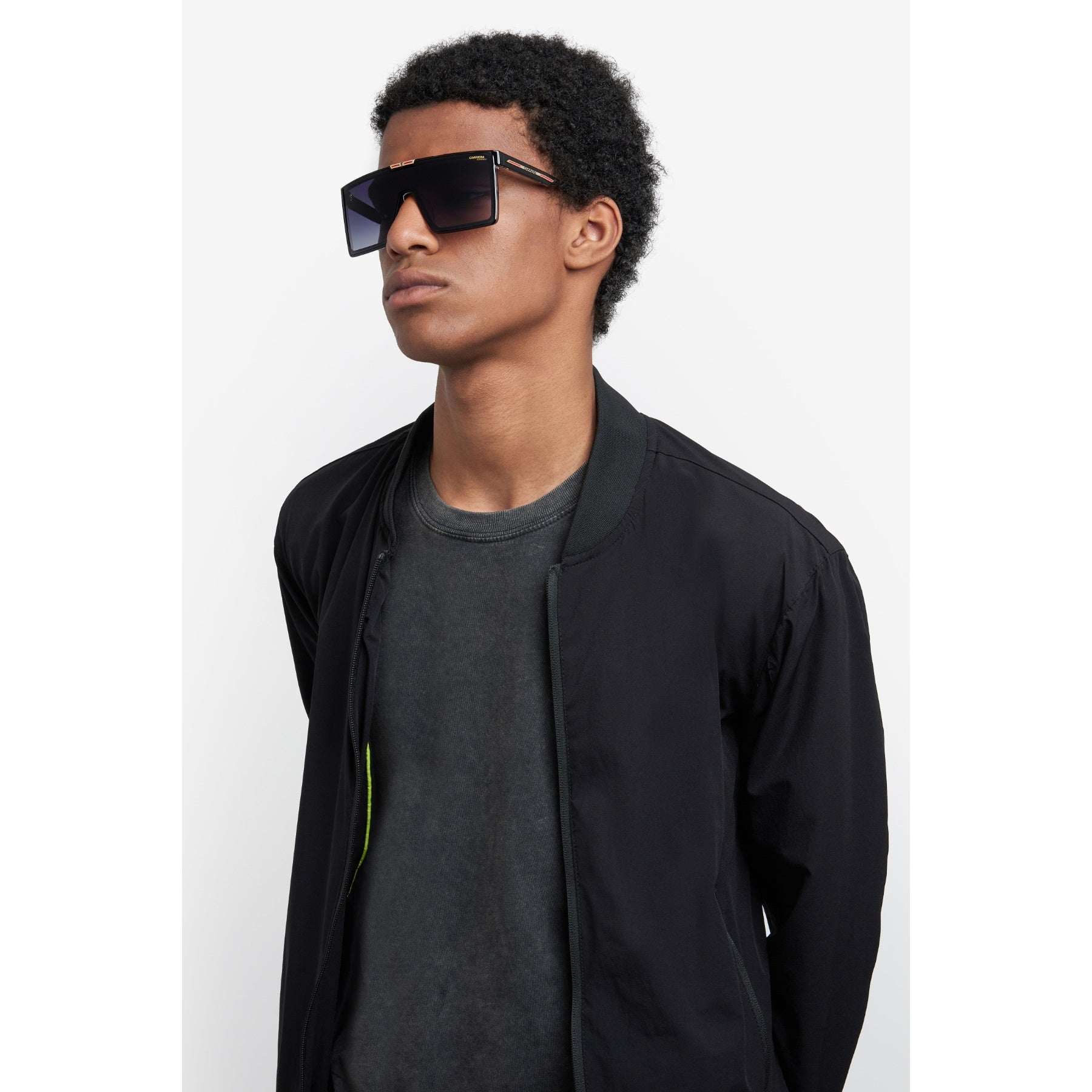 Carrera has transformed sunglasses into a true style statement. This pair is made in Italy, as attested to by the inscription on the inner temple, proof of Carrera’s commitment to quality. The shield frames have a futuristic aesthetic, crowned by the undeniably engaging horizontal ‘C’ logo plaque at the top. The metal detail with the Carrera flag is also echoed on the temples, which narrow slightly around the ears, to complete this unparalleled accessory.