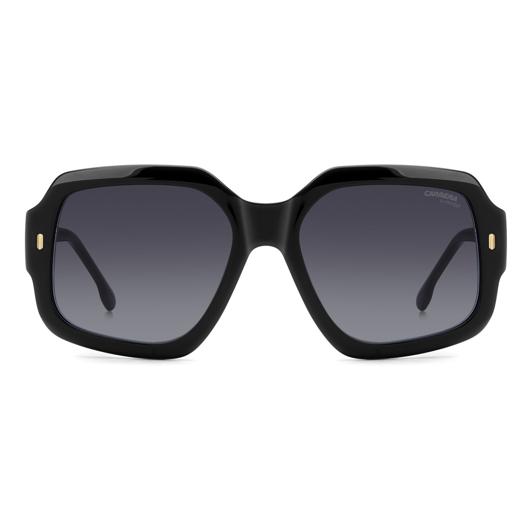 An interplay of shapes and proportions defines these women’s Carrera sunglasses: square, decisive and truly noteworthy. The shape of the front is unique, holding gradient or mirrored lenses, with the option to fit them with prescription lenses. The acetate structure is embellished by metal details: front rivets inspired by the Carrera flag and the Carrera ‘C’ on the temples. A neutral colour palette completes their distinctive aesthetic.