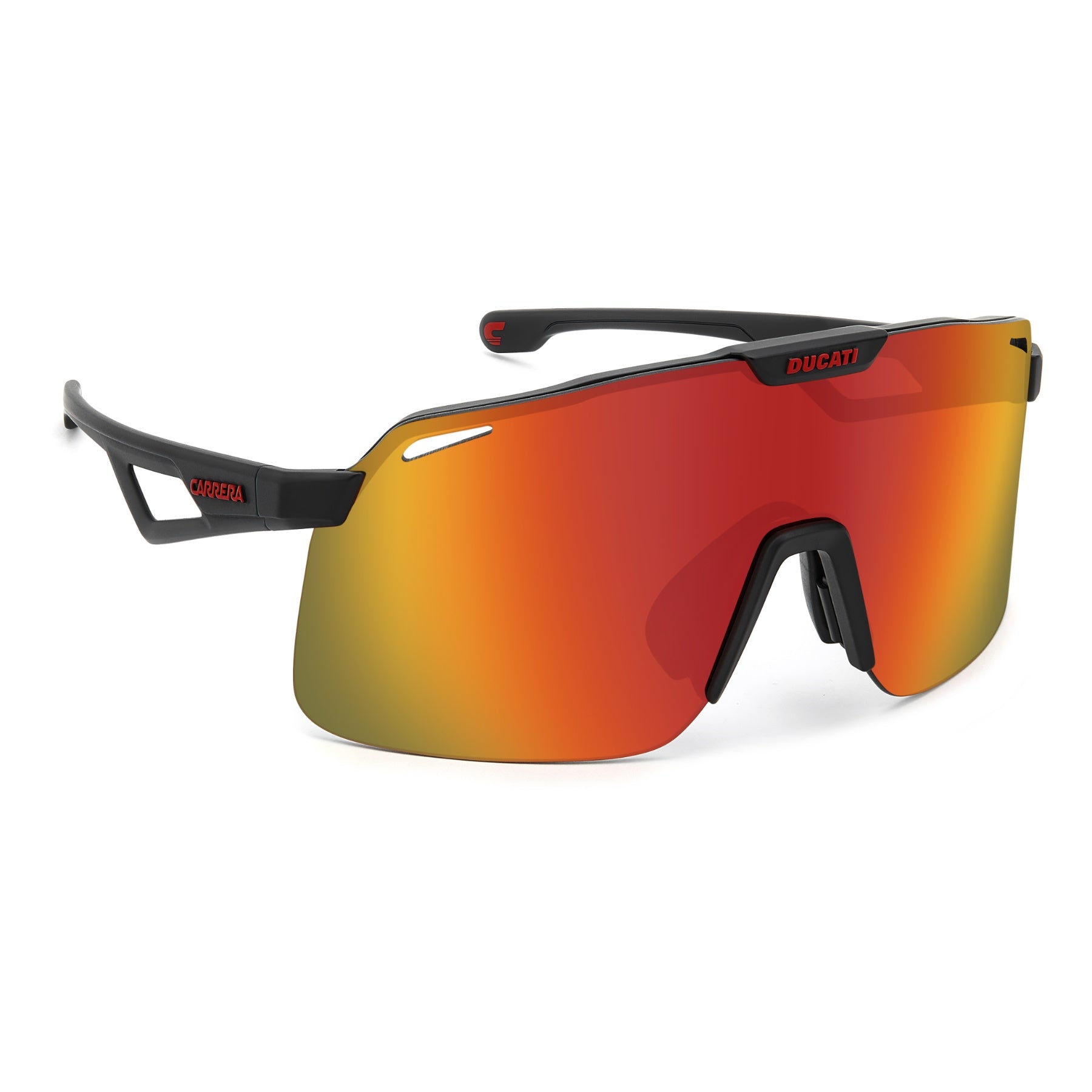 These Carrera | Ducati sunglasses are inspired by a passion for competitive racing. The shield maxi lens is held in place by a half rim frame and rubberised nose pads. Aerodynamic as Ducati motorcycles, the iconic temples feature a new design. Their inspiration is even more evident in the version with a Ducati RS graphic. Choose from plain, mirrored or Carrera Adaptive lenses with photochromic technology.