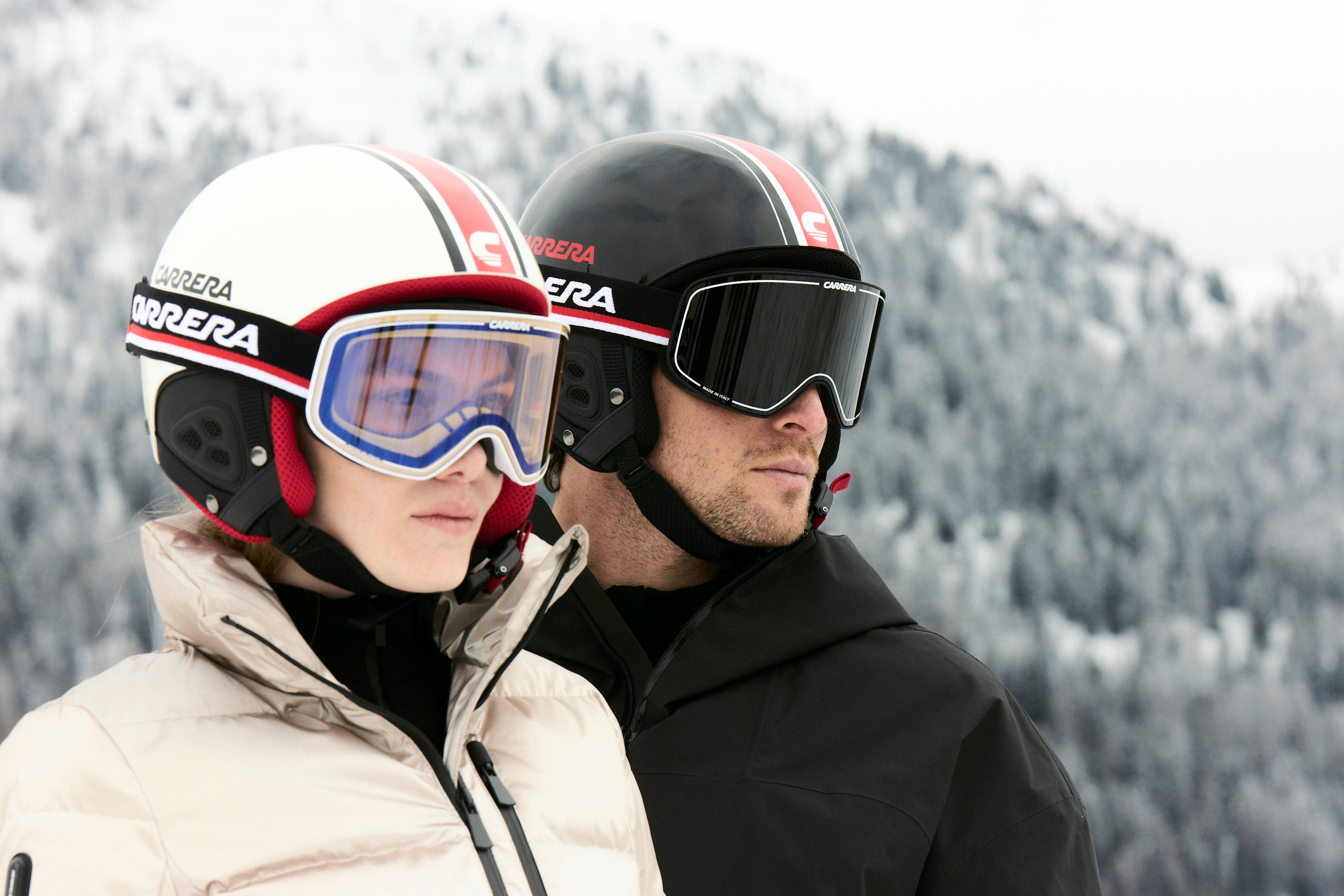 Inspired by the iconic models that have shaped the brand’s history on the slopes, the new Carrera goggles combine character and performance for a distinctive look. The exclusive design is also reflected in the elastic adjustable strap, which allows you to have a perfect fit while enhancing a timeless style. Equipped with Carrera UV Protect and Ultra lenses, they ensure outstanding visibility in all light conditions, delivering the ultimate blend of performance and style.